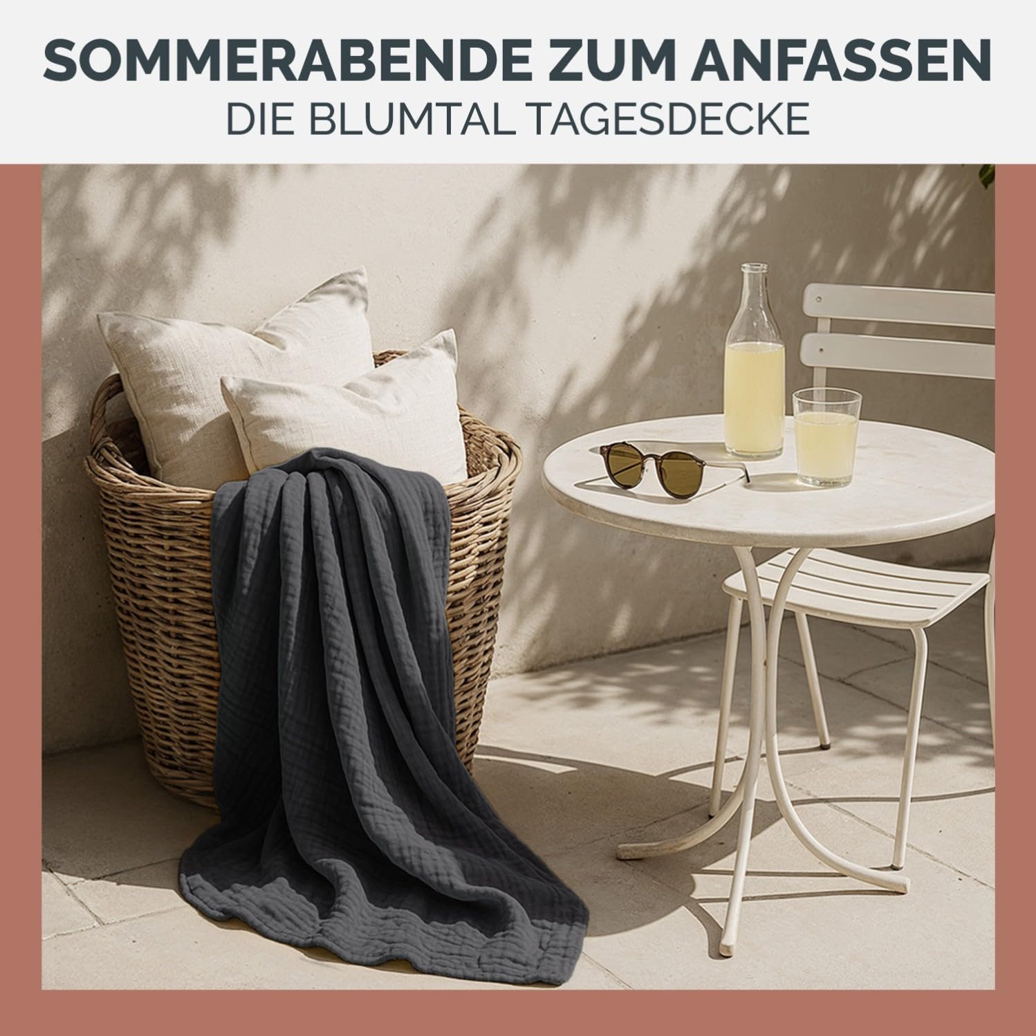 Blumtal daybed 200x230 cm Cotton - Muslin Blanket Oeko-TEX cert. - Bedspread 200x230 - Couch Throw - Light cotton cuddly blanket 100% - Living room sofa blanket - Bedspread Anthracite