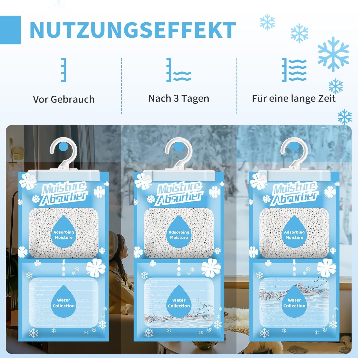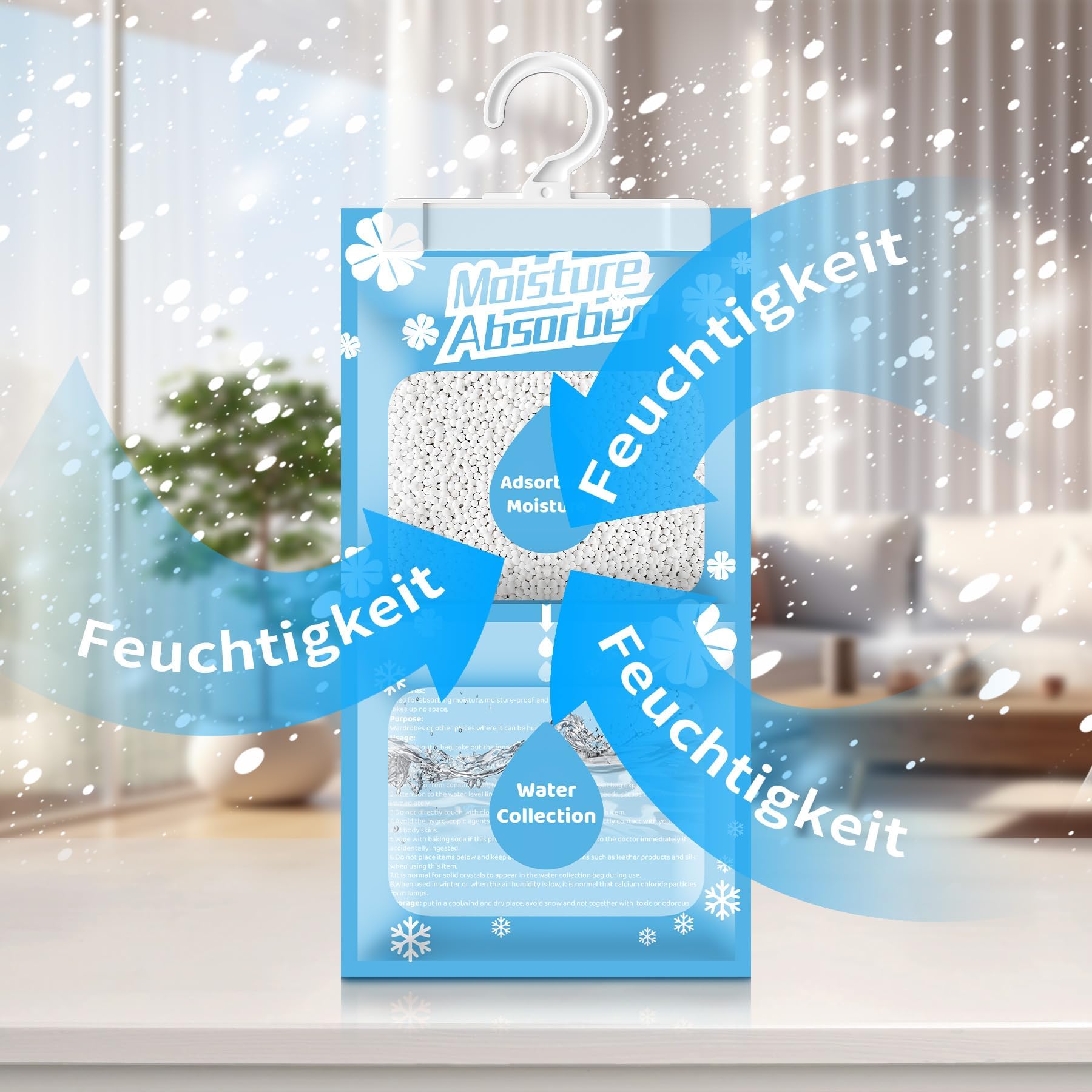 ["【Large Absorption】Hanging dehumidifiers capture excess moisture from the air and trap it in collection bags. Each dehumidifier bag contains 0.51 lbs (230 g) of globular calcium chloride particles, which can efficiently expand the dehumidification area to achieve rapid absorption results.","【Visible Packaging】Visible dehumidifiers allow you to easily check the collected moisture at a glance and also separate the collected moisture from calcium chloride particles to enhance dehumidification effectiveness. EACH dehumidifier bag can absorb up to 17 oz (500 ml) of moisture/water.","【Hanging Dehumidifiers】Better than traditional dehumidifiers, these hanging dehumidifier packs come equipped with hanging hooks for flexible use at home and in enclosed spaces such as closets, cabinets, bathrooms, kitchens, laundry rooms, RVs, boats, and basements. Simply take it out and hang it anywhere you need, then it starts working for a dry and pleasant atmosphere.","【No Leakage】These dehumidification particles use a high-quality Dupont bag inside to ensure air access and prevent water leakage, greatly protecting your clothes and personal items.","【Convenient Safety】These closet dehumidifier bags absorb moisture due to the physical dehumidification effect, without burdening users or the environment. Individual package for each hanging moisture absorber bag, you can easily hang a new one when the collection bag is full."]