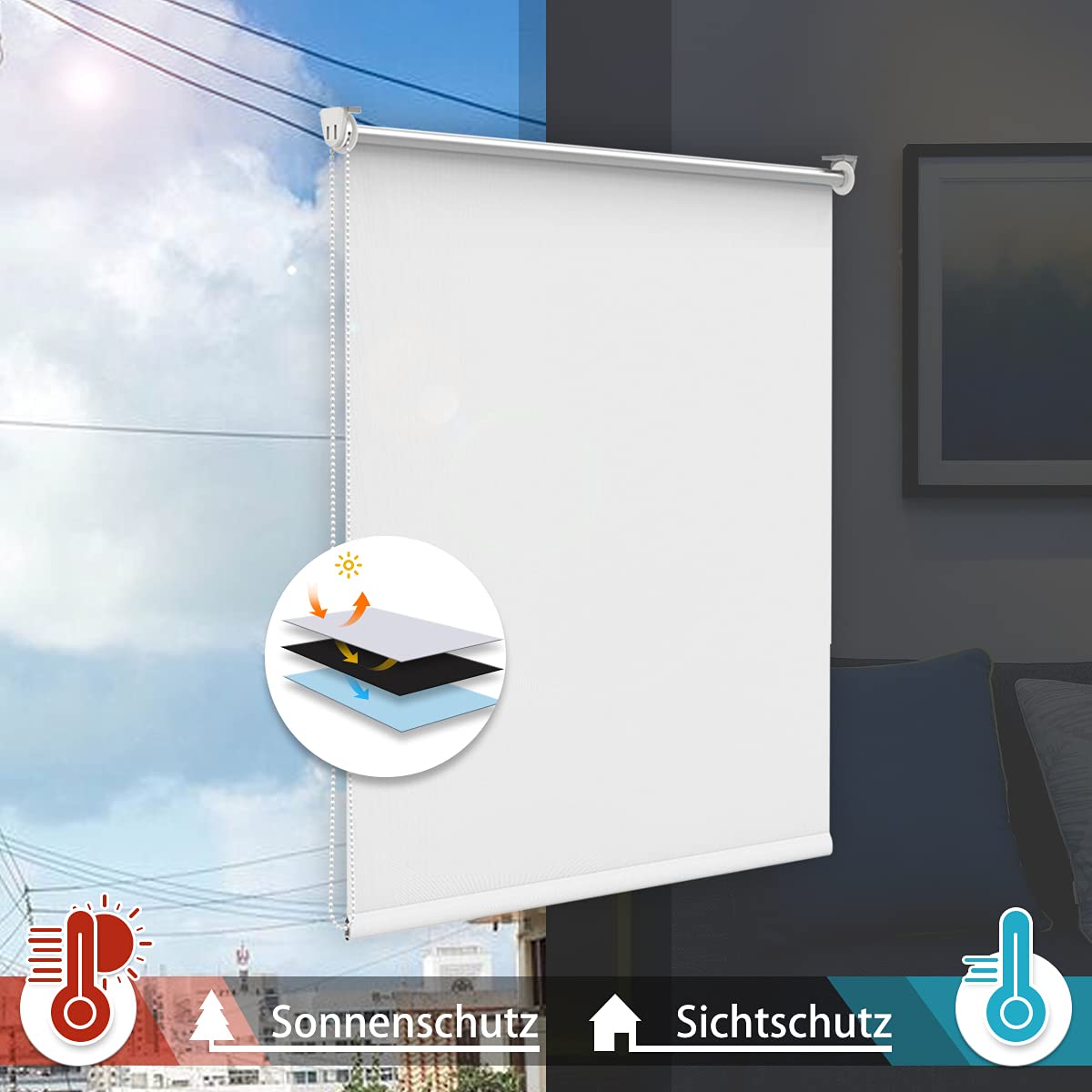 bobodeco blackout roller blind without drilling & with drilling, blackout roller blind with clamp, white 85x130cm (WxH), thermal roller blind privacy and sun protection, roller blinds heat protection for windows & doors