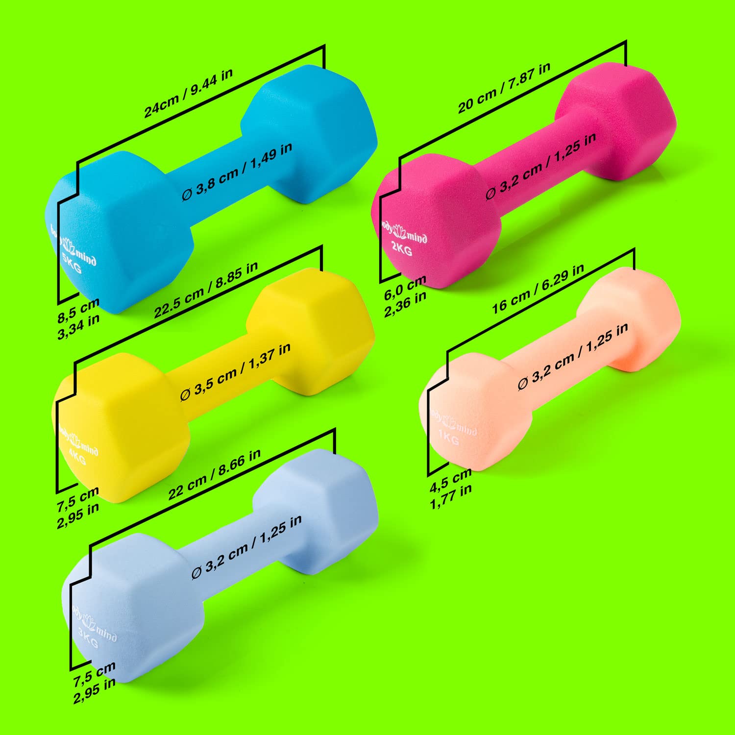 Body & Mind® Dumbbells 2-pack Neoprene Gym Dumbbells; Effective strength training with various weights; Fitness workout for home.