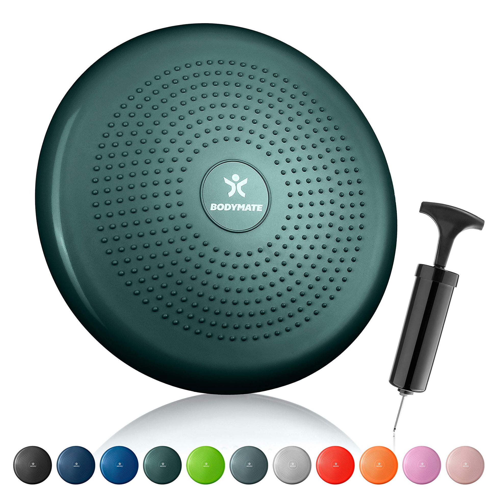 BODYMATE ball cushion with pump Midnight Green 34cm diameter - balance cushion, air cushion, balance pad, knob cushion - core, fitness, rehab, coordination and back training.