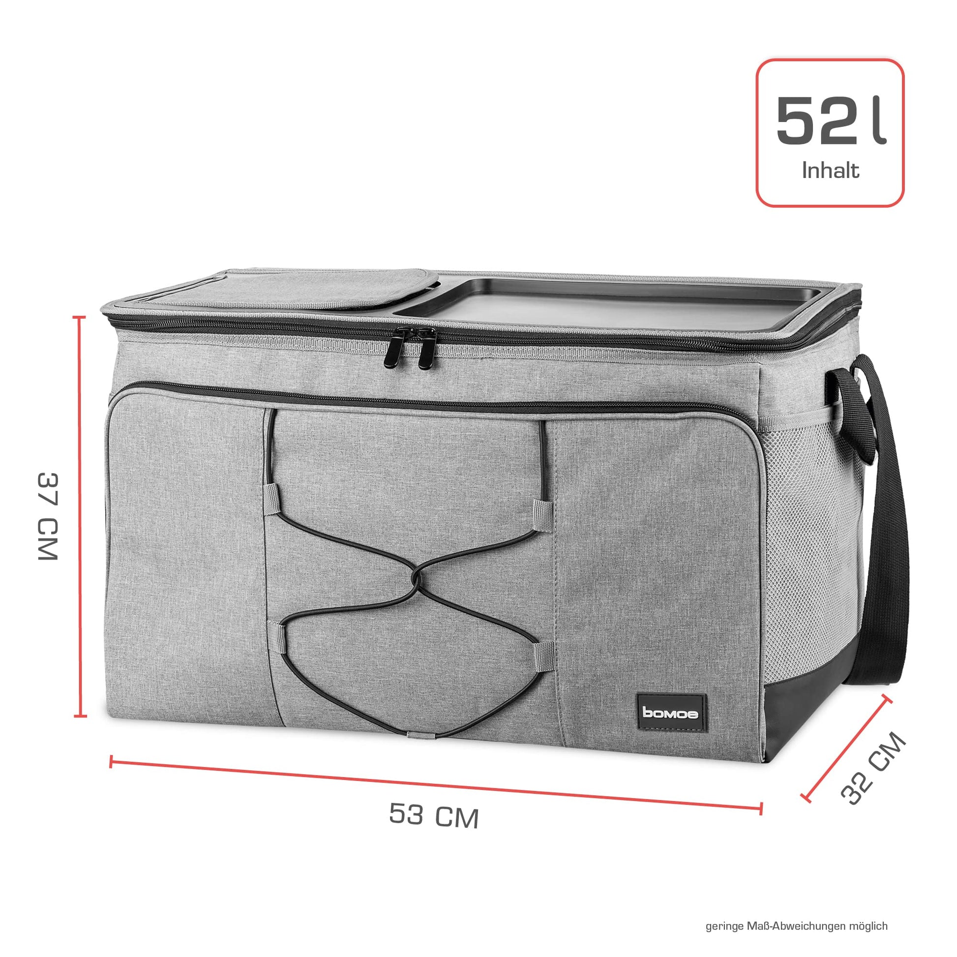 bomoe 52 liter XXL cooler bag foldable - outdoor cooler box 16h cooling function with shoulder strap, waterproof picnic bag thermal bag with storage surface, insulated bag gray - IceBreezer KT53
