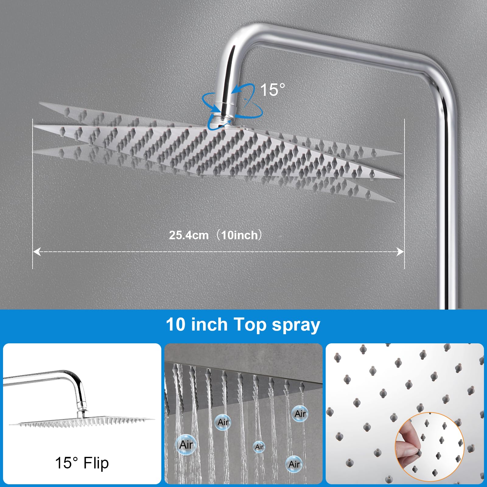 BONADE shower system with thermostat rain shower head made of 304 stainless steel, shower mixer complete set including shower thermostat, adjustable wall bracket 10 inch rain shower, bathtub faucets set