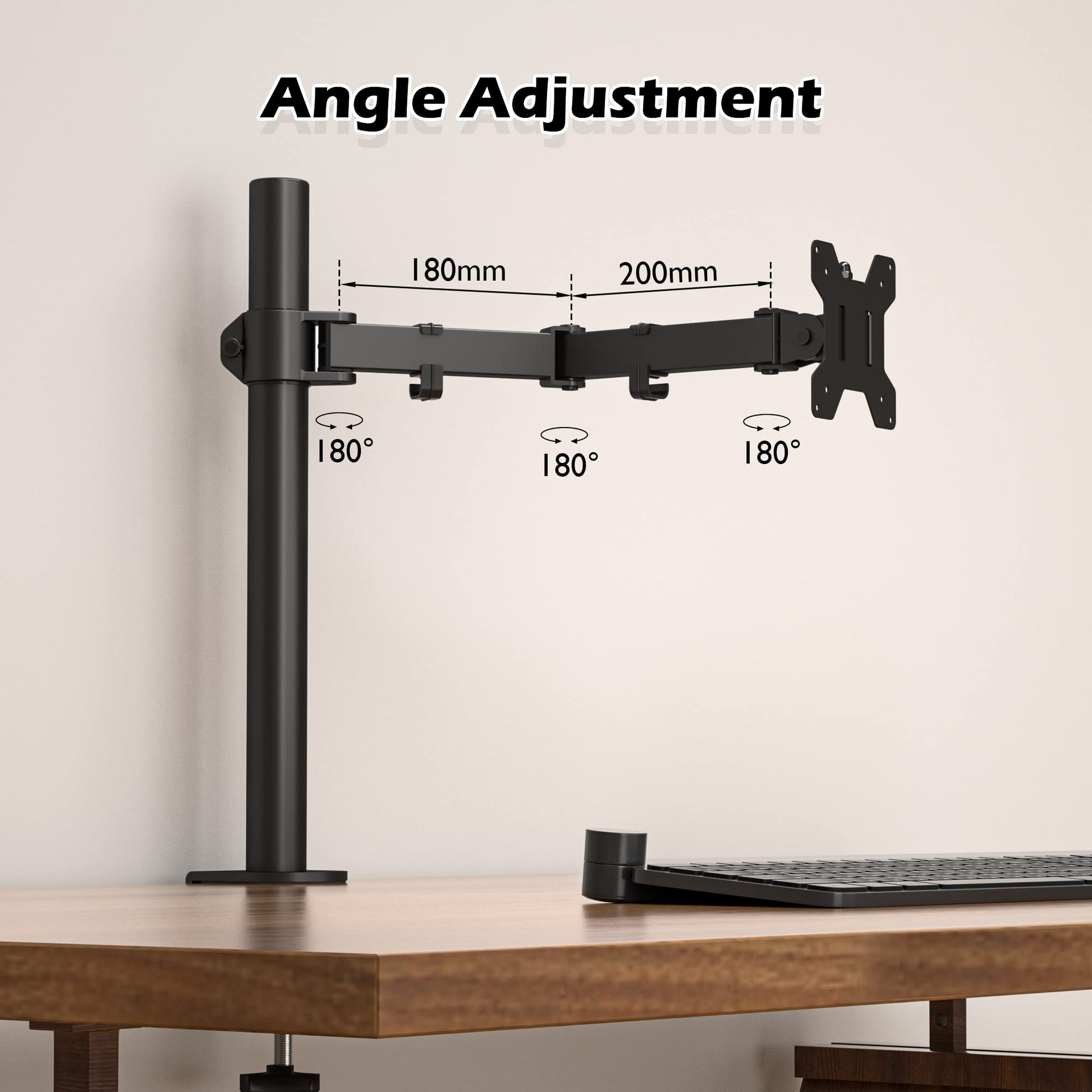 TILT, SWIVEL, and ROTATE - With tilt +90°/-90°, 180° swivel, and 360° rotate for excellent flexibility; Max arm extension length of 430 mm, height adjustable for optimal viewing angles; the monitor mount is perfect for multitaskers, designers, programmers, etc.