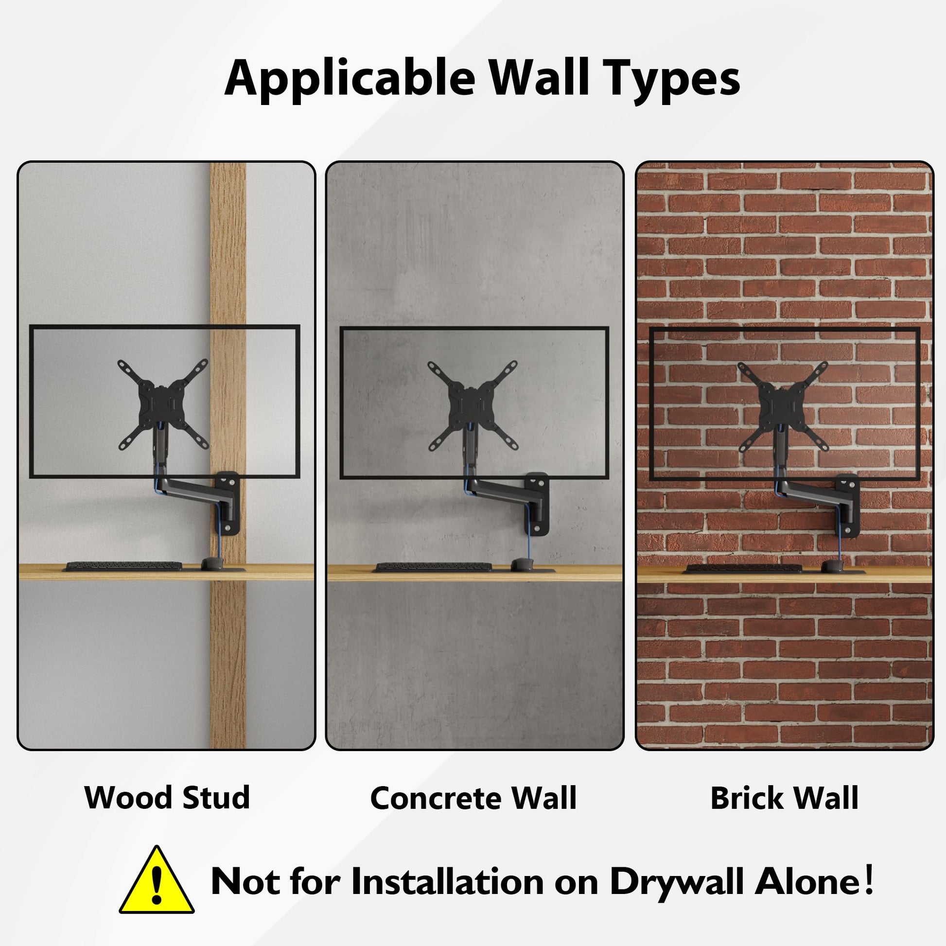 High-quality material: This monitor mount is made of high-quality and polished aerospace metal for long-lasting durability and easy maintenance. In addition, the TV wall mount is equipped with an ultra-precision gas spring that has passed movement tests with 25000 adjustment cycles to ensure reliable and stable positioning. With a low damping rate of 5%, the gas spring arm minimizes noise and unwanted movements.