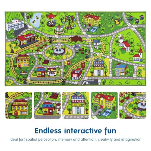 ["❤️Good Quality Material: The children's play mat is made of high-quality polyester, feels soft and comfortable, abrasion-resistant, easy to clean, does not wrinkle easily, fluff can reduce noise during play. Sewn edge and reinforced edge for durability.","❤️Non-Slip Safety: The weight of the car play mat for children is heavier and does not move easily. It can easily cover the hardwood floor and even the original carpet. It is made of a thick latex backing that prevents it from slipping when children play on it, [on carpet and flooring] and it stays in place.","❤️Dimensions: Children's play city carpet with a size of 100X200cm, quite perfect for 1-4 children, vibrant colors, multiple street designs, perfect size and provide more sufficient play space for children. and great activity rugs for kids to play with trucks, cars, and trains.","❤️Lightfast: High-resolution printing and vibrant colors, the pattern is clear and rich, long service life, not easy to fade. Unique three-dimensional 3D pattern design, the 3D stereo scene is more vivid than the flat architectural pattern in the market. With such a children's road play mat, the spatial perception of young children can grow and be cultivated, promoting children's abstract logical thinking ability.","❤️Play Is The Best Way To Learn: Race track carpet train, motivate your child's curiosity and interest! The city street design carpet with train, race track, shop, bus stop, cafe, restaurant, phone, etc. makes it very versatile and provides children with a fun interactive backdrop for many exciting games through the pretend cities.","❤️Easy to Store: The city mat folds up nicely and rolls up, easy to carry and store. Children's rugs are suitable for bedrooms, classrooms, playrooms, nurseries, children's rooms, and children's room decorations.","❤️Perfect Gift: The toy car driving play mat is the perfect gift for birthdays, children's days, Christmas, and other festivals.","❤️Booooom Jackson itself provides the best customer experience by offering high-quality carpets and services. If you have any questions about the product, please contact us. We will take care of you within 24 hours."]