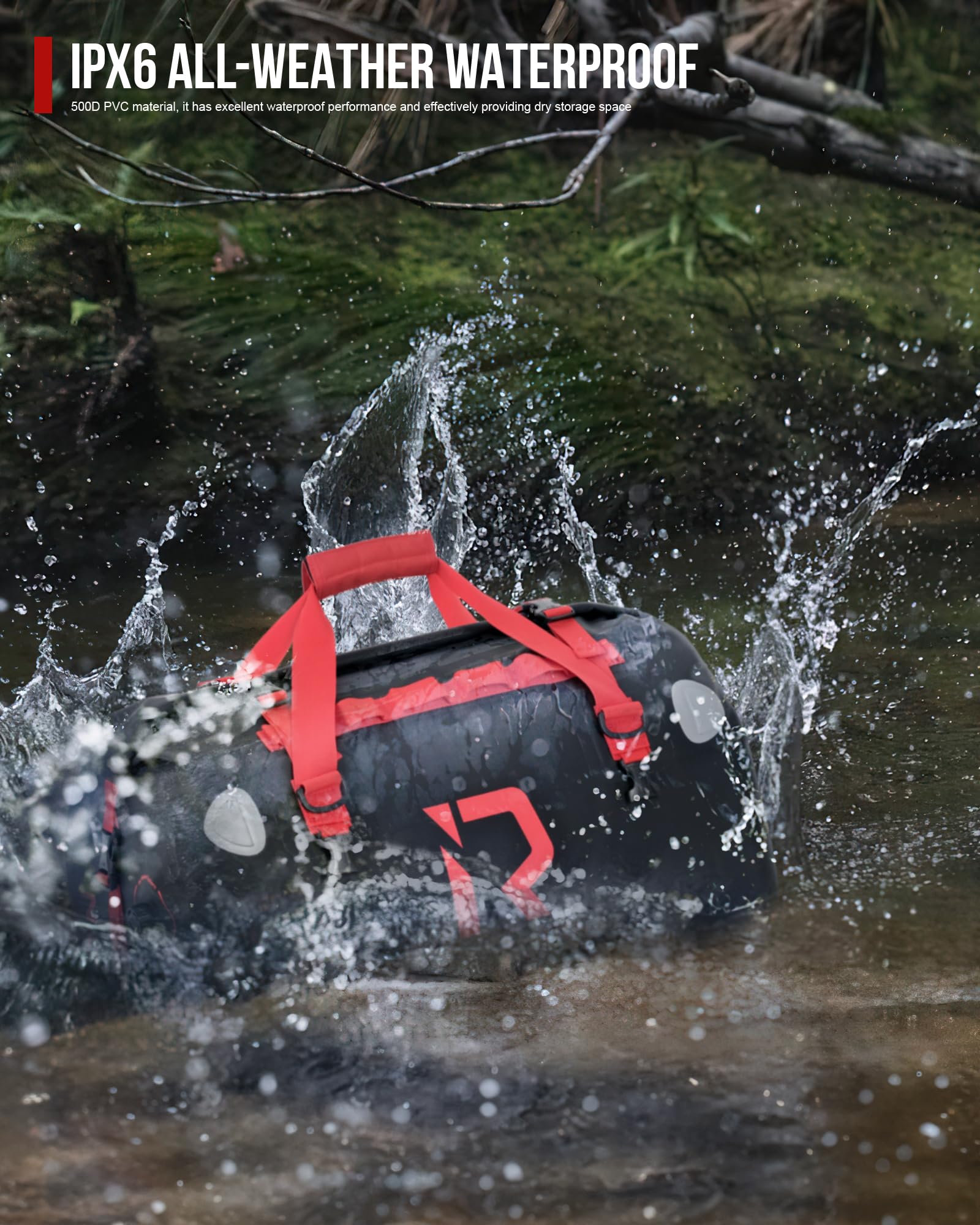 ["Waterproof & Durable - 500D PVC, welded seams and roll top closure protect your gear even in extreme weather conditions.", "70L Giant capacity - Extra large main compartment with interior pocket and exterior mesh pocket. Perfect for long trips and multi-day adventures.", "Safe & thoughtful - Reflective elements for visibility, ventilation valve for compression, sturdy attachment points.", "Flexible attachment & carrying comfort - 4 quick release straps secure the bag at the rear; detachable, padded shoulder strap for comfortable carrying.", "For adventures & long trips - Can be used as a tail bag, waterproof luggage roll or travel bag; ideal for motorcycle tours, camping, outdoor expeditions."]