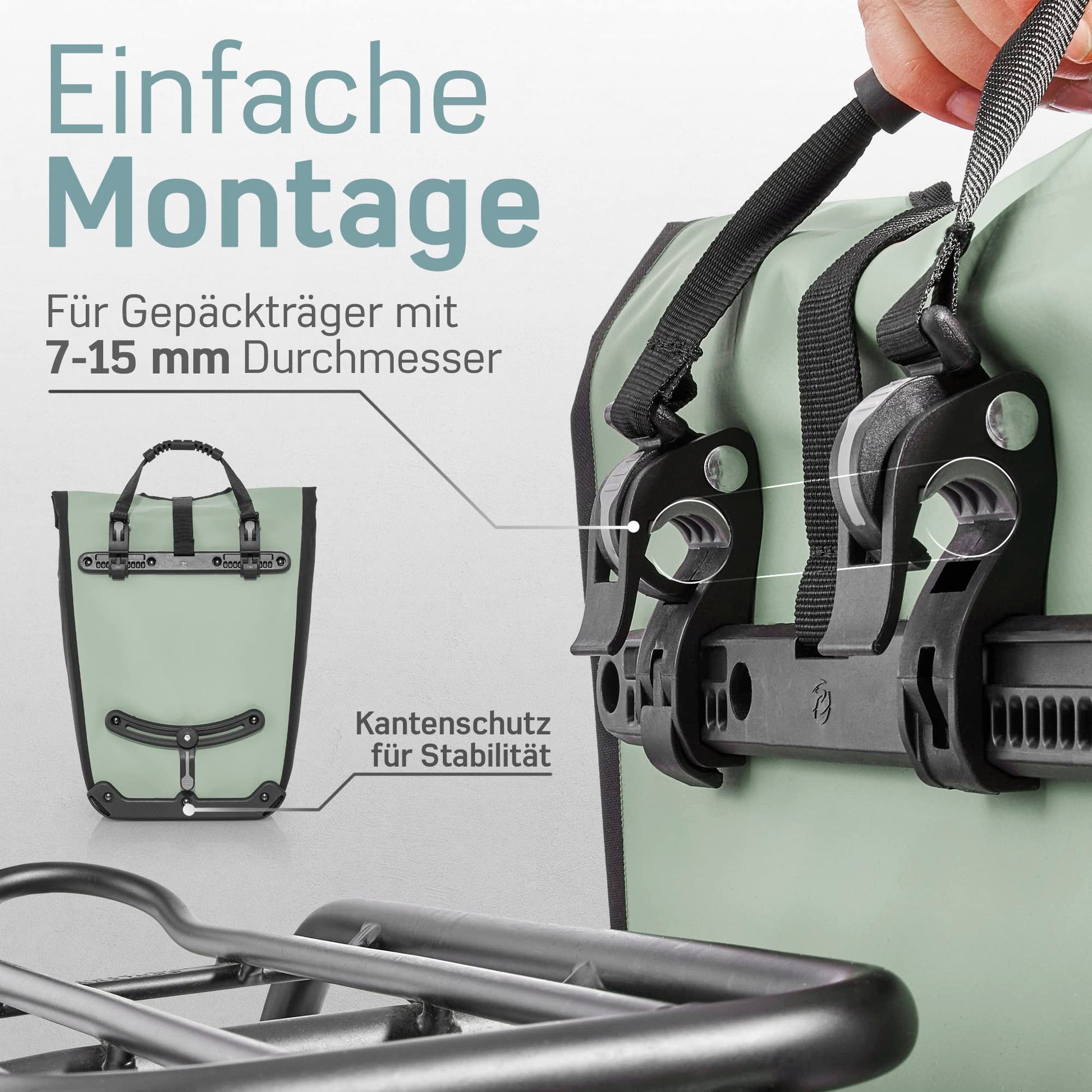 "FOR EVERY LUGGAGE CARRIER - The bike backpack can be easily mounted on any common luggage carrier with a single hand movement. The luggage bags/pack bags are ready for use.",