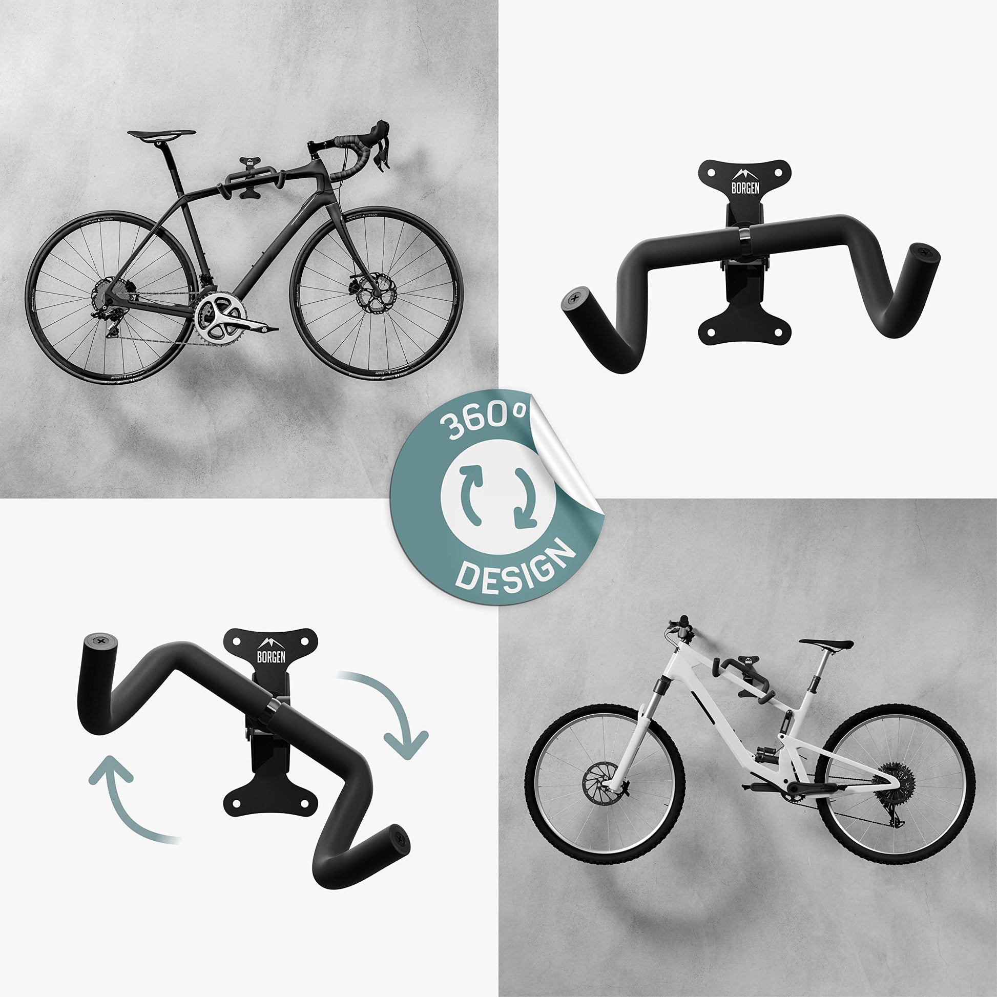 ["FOR EVERY BIKE TYPE - This innovative wall mount is pivoting and adjusts to any frame geometry and handlebar width. The perfect wall mount for a mountain bike, road bike, and e-bike","PROTECTS YOUR BIKE - The soft protection on the bike mount prevents hydraulic hoses and shift cables from being pinched. The bike suspension is very gentle and prevents scratches","CLEAN WALLS - The optional wall distance of the bike mount provides enough space to the wall. In addition, the front wheel is fixed in the bike suspension, keeping the wall clean","SPACE-SAVING - When the bike is not hanging in the bike wall mount, the bike suspension can be folded up, creating order in the basement, apartment, or garage. A perfect wall mount","SECURE HOLD - The Fischer Duopower plugs included with the bike wall mount are suitable for all materials. Garage, basement, apartment - the bike wall mount always hangs securely"]