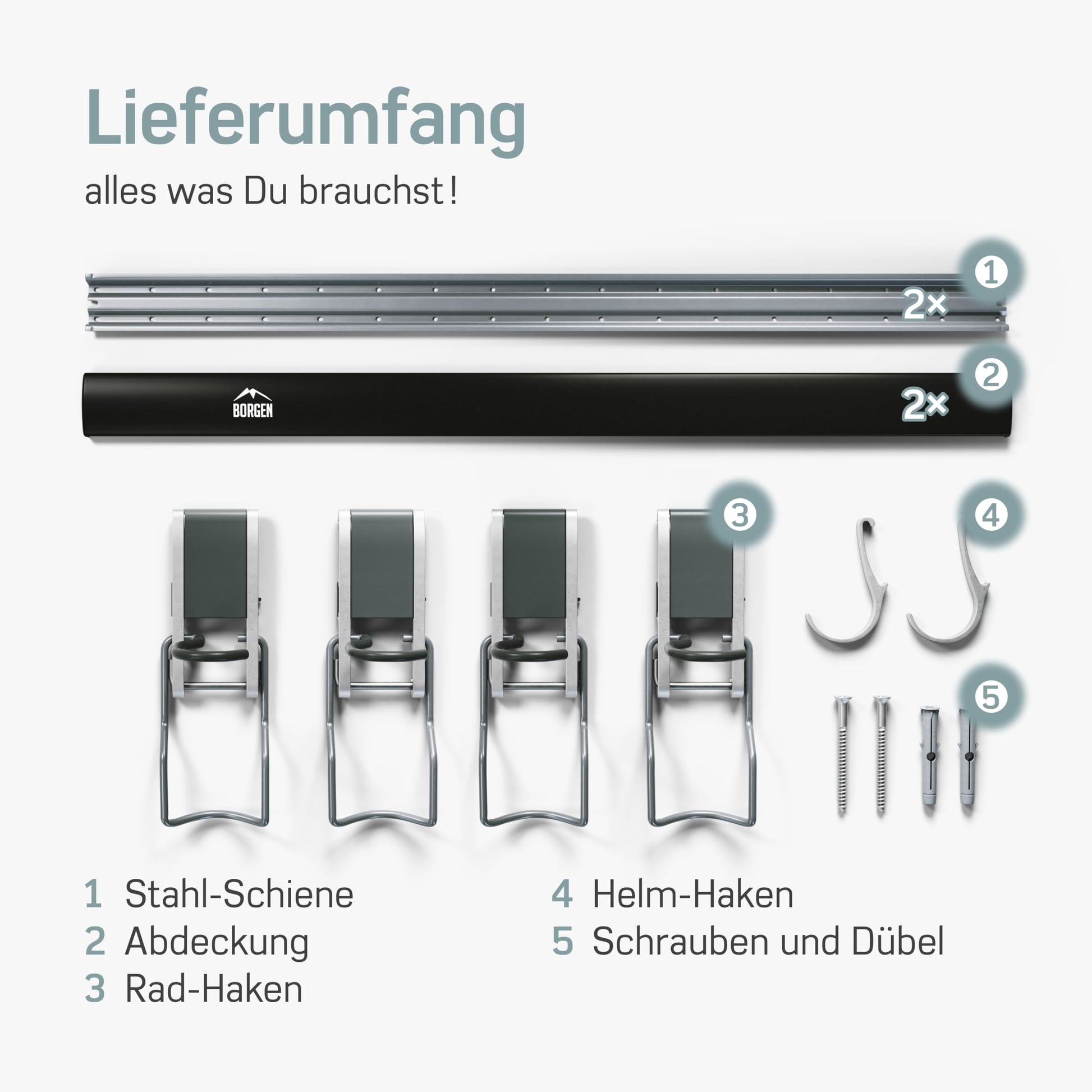"Garage storage solution - Never been easier to keep things organized. The Borgen wall mount creates new space in the garage, no more bikes lying around. Perfect for 4 bikes plus accessories.