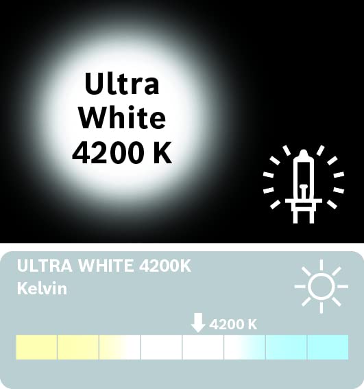 ["Up to 4200 K for intense white, daylight-like light and stronger contrasts","More pleasant for the eyes during night driving, other road users are not blinded","The xenon effect gives the vehicle a nice appearance","Up to 30 percent more light compared to a standard halogen lamp","Better visibility for more driving pleasure even in difficult weather conditions: rain showers, fog, etc.","ECE approval","Available in H1, H4, H7","Quantity: 2 bulbs"]