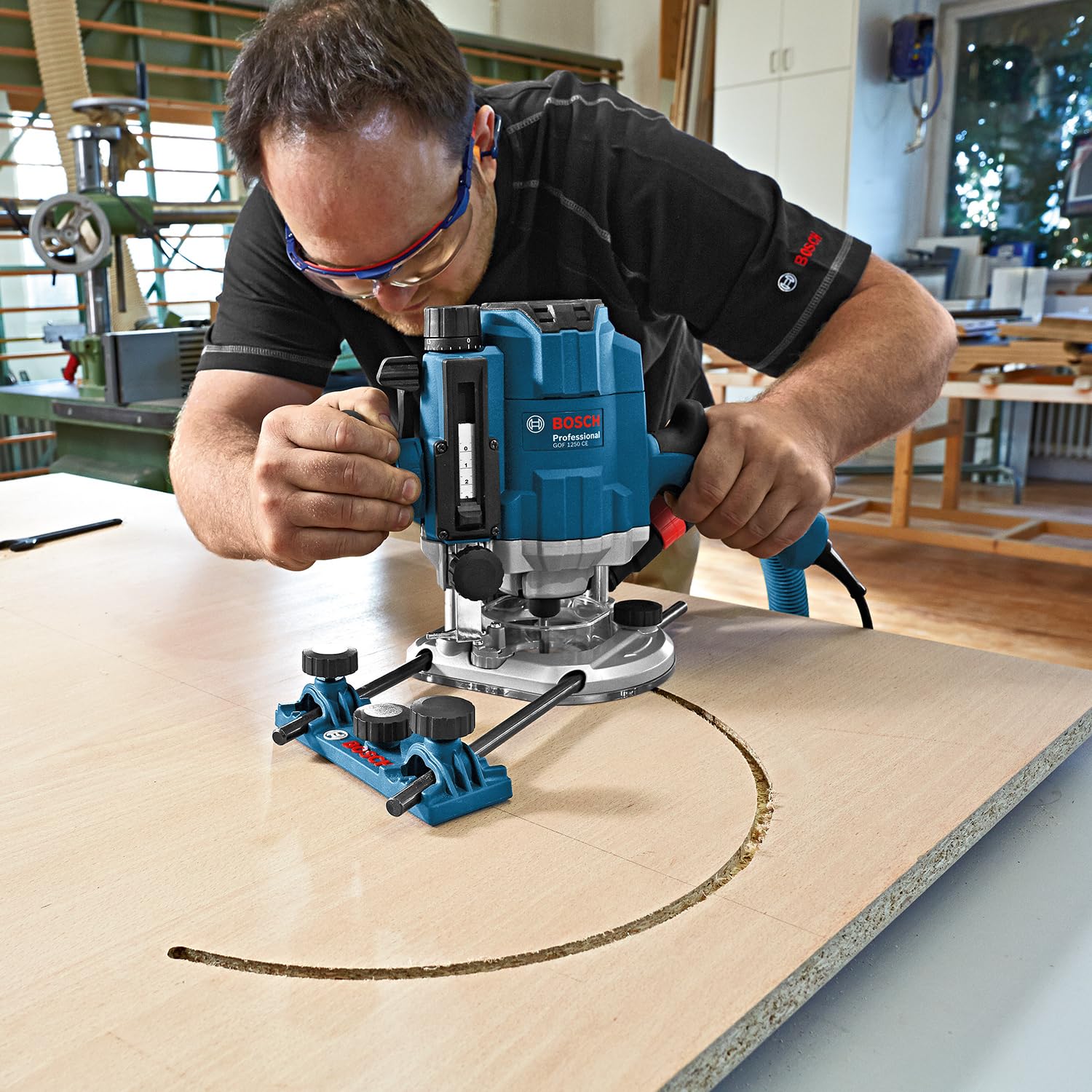 Bosch Professional Router GOF 1250 CE (including 19 mm open-end wrench, parallel guide with fine adjustment, copy sleeve adapter, collet, L-BOXX)