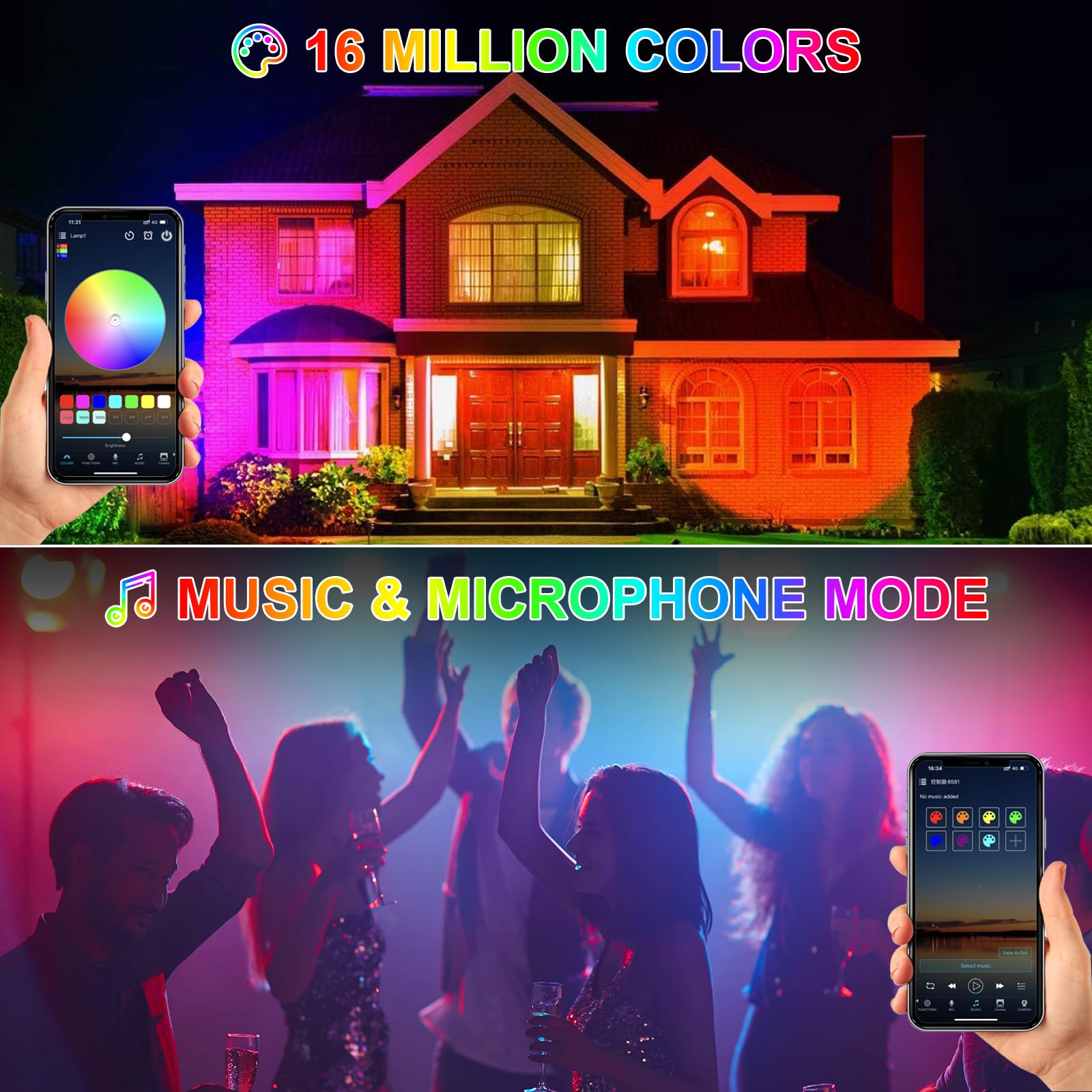 ["【RGBW color changing landscape light】 16 million colors can be set, brightness and color can be easily adjusted, dynamic mode, choose the right light theme according to different environments. Control the spotlight via remote control or APP and choose your favorite color and mode.","【Easy Installation】two different installation methods, you can stick into the ground / attach to the wall. 180° adjustable light body allows you to easily adjust the light direction. With plug power cable can be connected directly without wiring, saving time and effort. 24 V low voltage, more safe and reliable to use.","【Timer and Memory Function】 The LED floodlight RGB can be set to automatically turn on and off at a specific time. Very convenient and energy-saving. The garden spotlight has a memory function. When you turn the light back on, it retains the same settings as when you turned it off.","【IP66 waterproof】 The rugged aluminum die-cast housing and waterproof IP66 design enhance the durability and long-term use of the RGB garden light, which can withstand a variety of harsh weather conditions. Ideal for gardens, patios, parties, weddings, tree lighting, pathways, garden fences, swimming pools, and more.","【Widely Used】Led rgb floodlight music or microphone mode, the color will change according to the rhythm of the music and light effects for parties, weddings, festivals, Christmas, Halloween, stage lighting, etc., to create a romantic and relaxing atmosphere for you."]