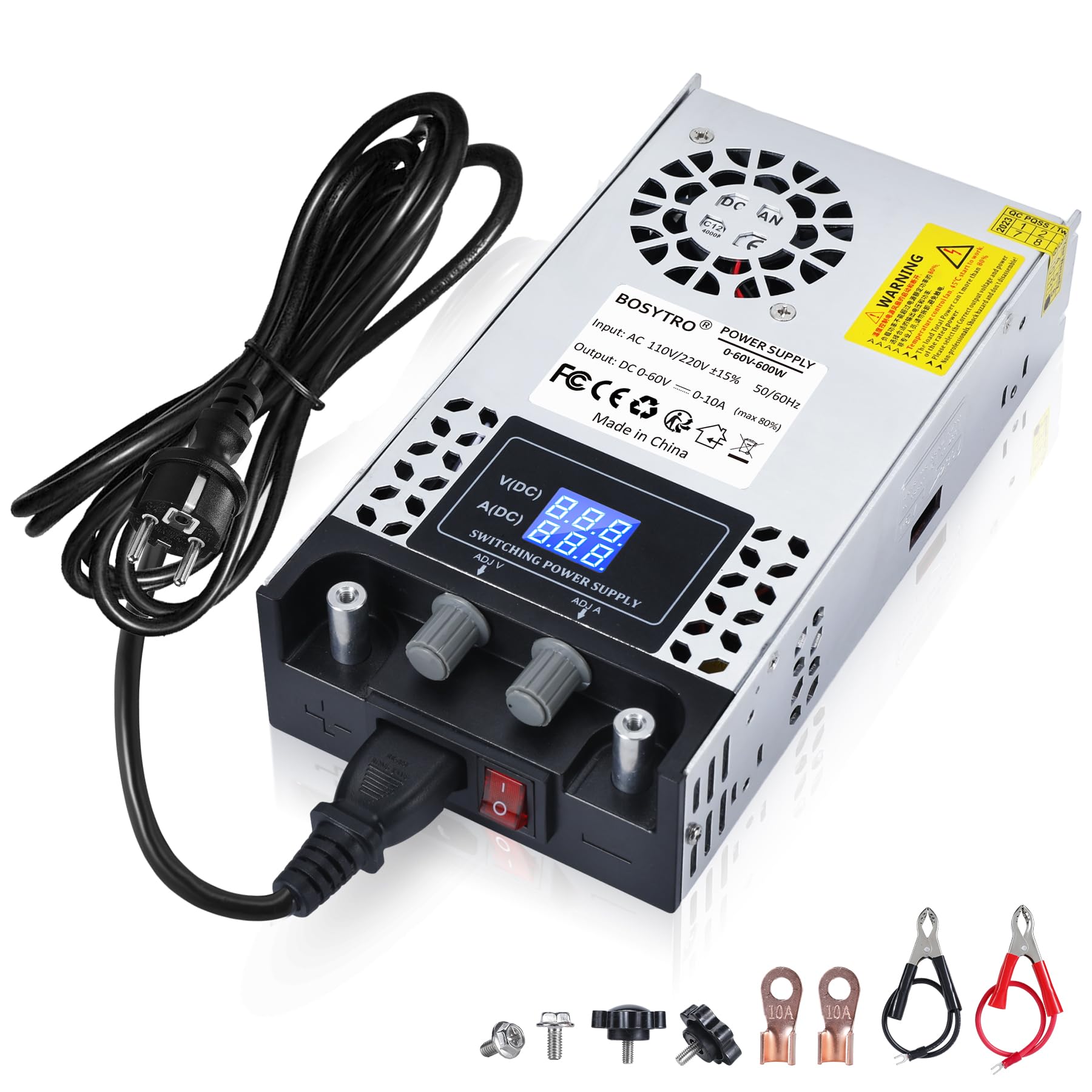 BOSYTRO Adjustable Power Supply 0-60V 0-10A 600W Switching Power Supply Transformer Power Supply Transformer 230v to 60v Power Supply SMPS for LED Strips, CCTV, 3D Printer, Radio, Camera, Laboratory Power Supply