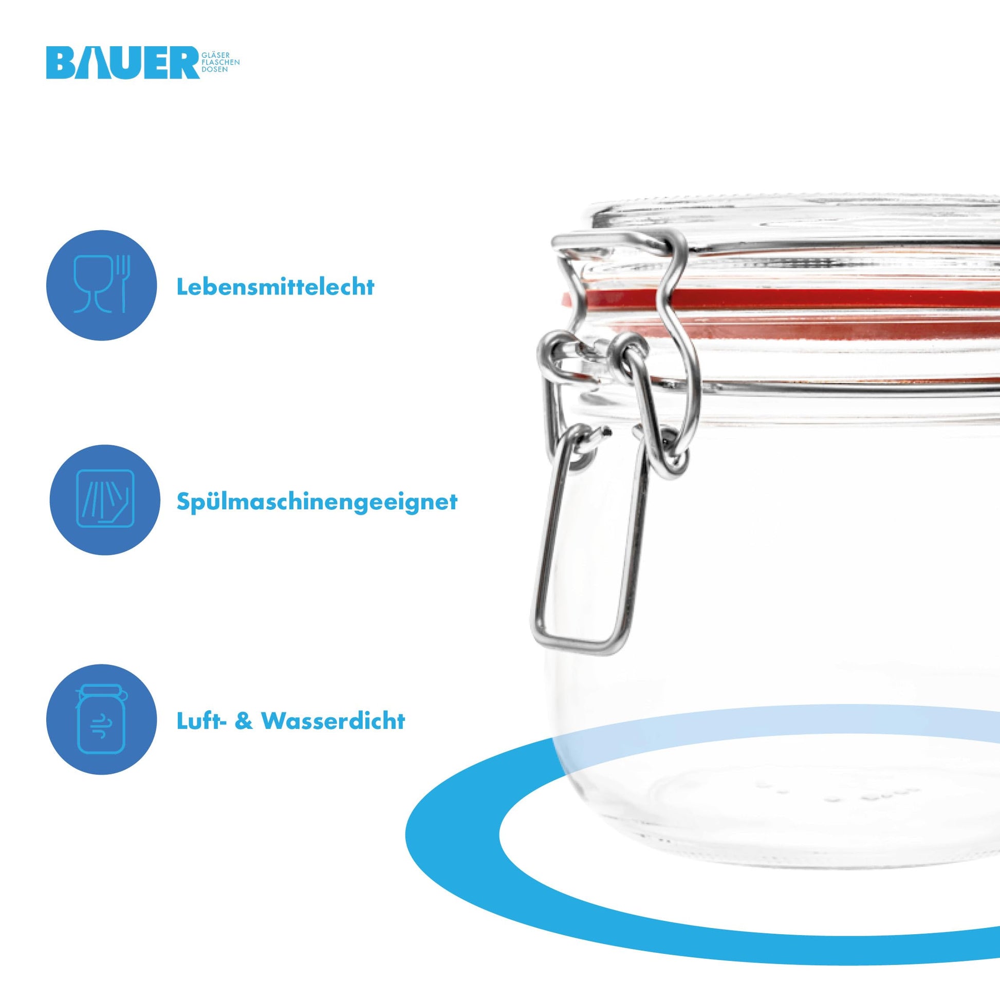 "Sealing airtight. The canning jars guarantee freshness & aroma thanks to the 100% airtight and watertight wire closure, e.g. as glass storage jars - completely plastic-free.",