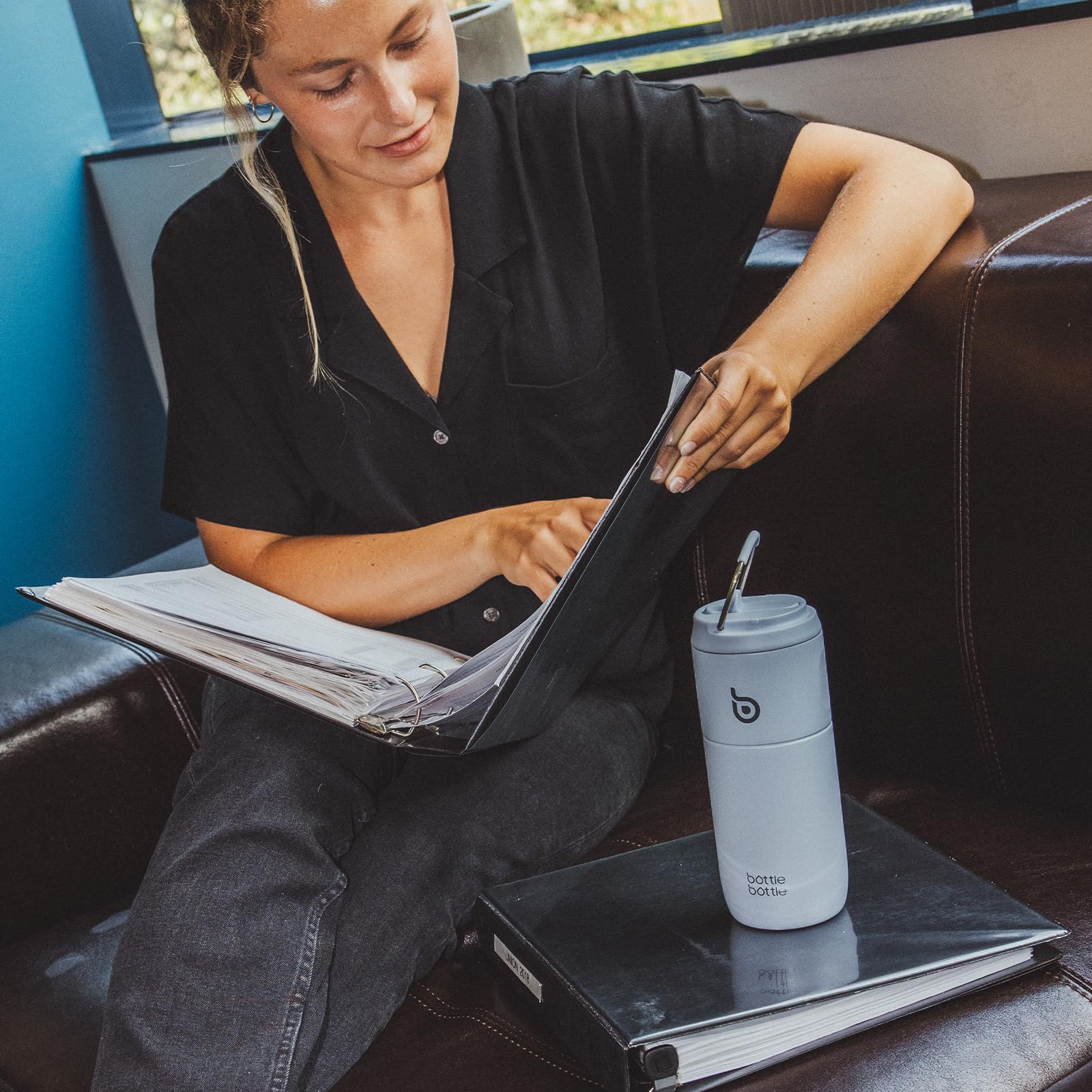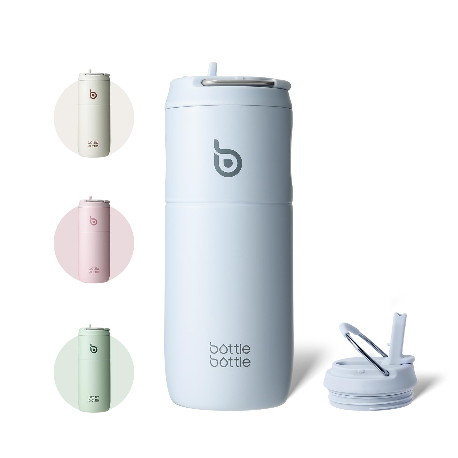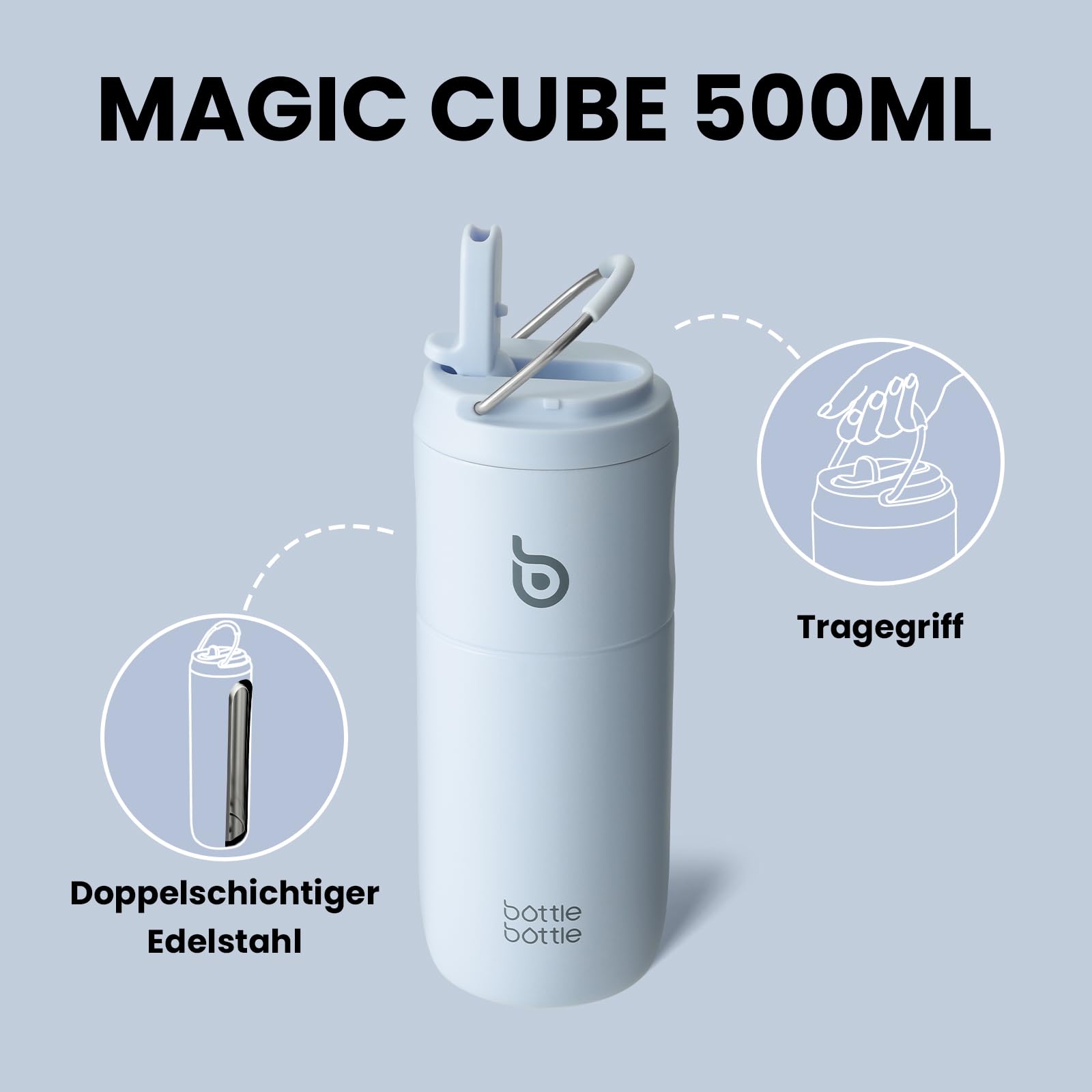 bottlebottle Stainless Steel Straw Water Bottle 500ml, leak-proof sports water bottle, ideal for school, office, hiking, and outings, BPA-free (Blue)