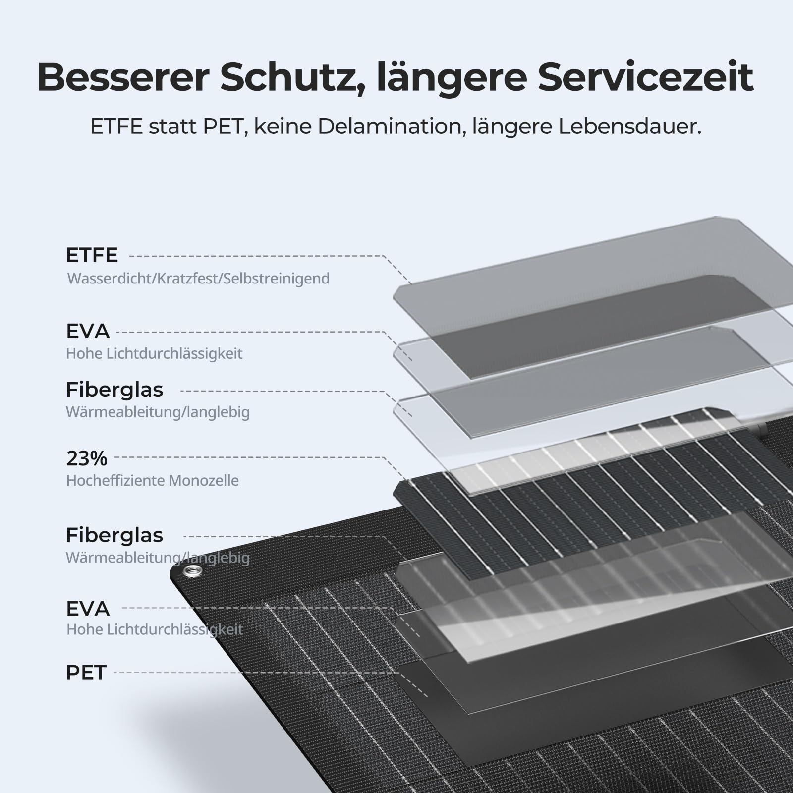 ["Foldable and portable】The foldable 50W solar panel from BougeRV weighs only 1.76 lbs. The folded dimensions are just 14.4" x 8.5" x 1.2", so you can easily store and take it anywhere.【Durable and long-lasting】ETFE is used instead of PET, which does not delaminate even after long-term use. The double-layered fiberglass material has better scratch and impact resistance than other foldable solar panels made of monocrystalline silicon and can be bent up to 270°. These features reduce the risk of damage to the solar cells and significantly extend the lifespan.【Wide compatibility】This solar panel is perfectly compatible with BougeRV JuiceGo 240Wh power station (sold separately) and other small power stations, perfect for emergency charging of your mobile charging station outdoors. Equipped with a DC7909/5521 output interface (up to 50W), a USB-C output port (5V/3A, up to 18W), and a USB-A output interface (5V/3A, up to 18W), it can quickly charge your phone and laptop.【Higher energy conversion rate】BougeRV's 50W fiberglass solar module features a high-quality 10BB battery design and multi-layered insulation material with a maximum conversion rate of 23%.【Multiple usage scenarios】The pre-punched design and included carabiner provide flexible mobility, allowing the solar panel to be easily mounted on a variety of outdoor devices such as backpacks, tents, or even bicycles to meet different scenario requirements.【Package includes】BougeRV 50W foldable solar panel *1, DC5521 / DC7909 charging cable *1, carabiner *4, user manual *1."]