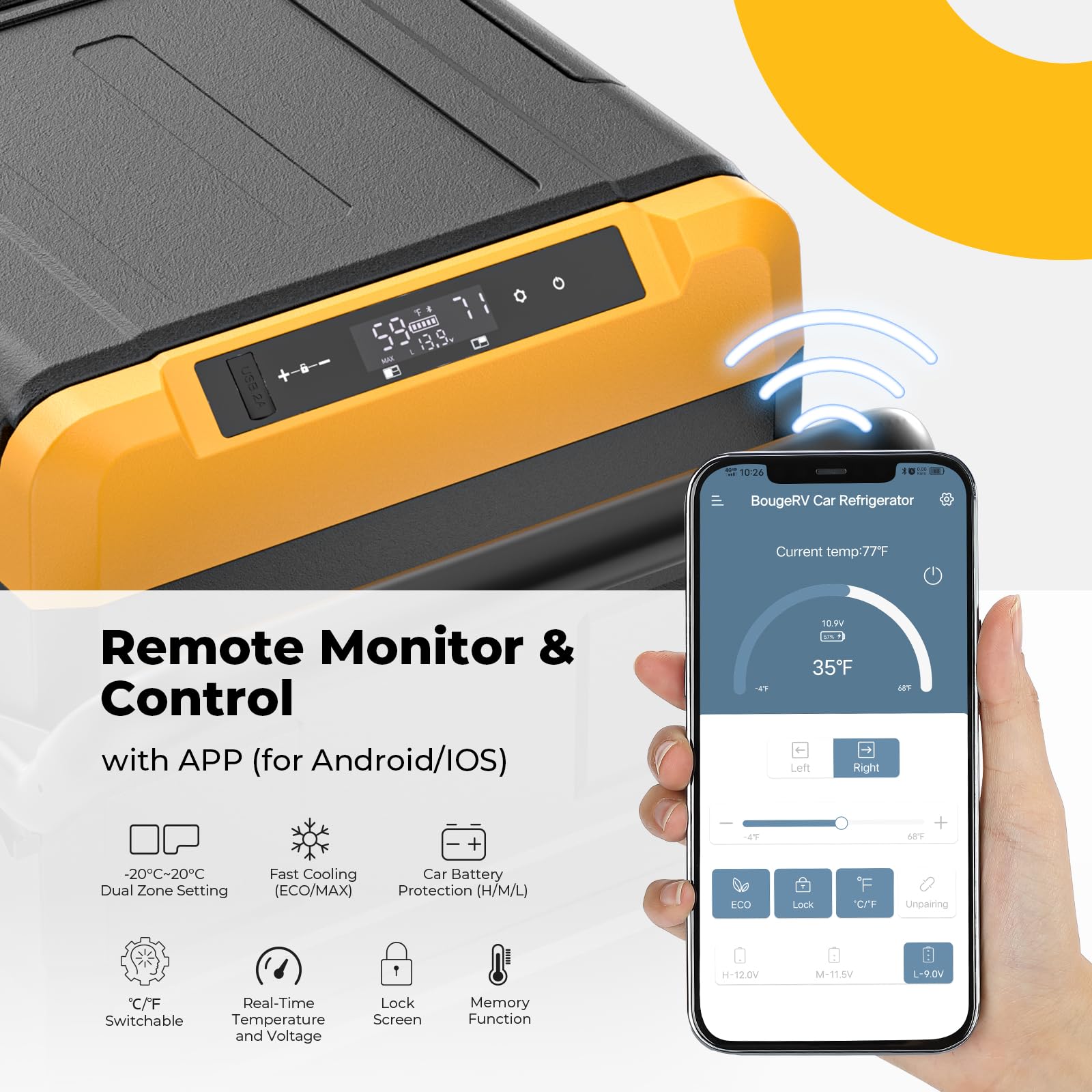 BougeRV Portable Compressor Cooler CRD 35L 12V/24V 230V Dual Zone Double Door, Car Refrigerator Electric with APP Control, for Camping Car Travel Boat -20℃~20℃ (Updated)