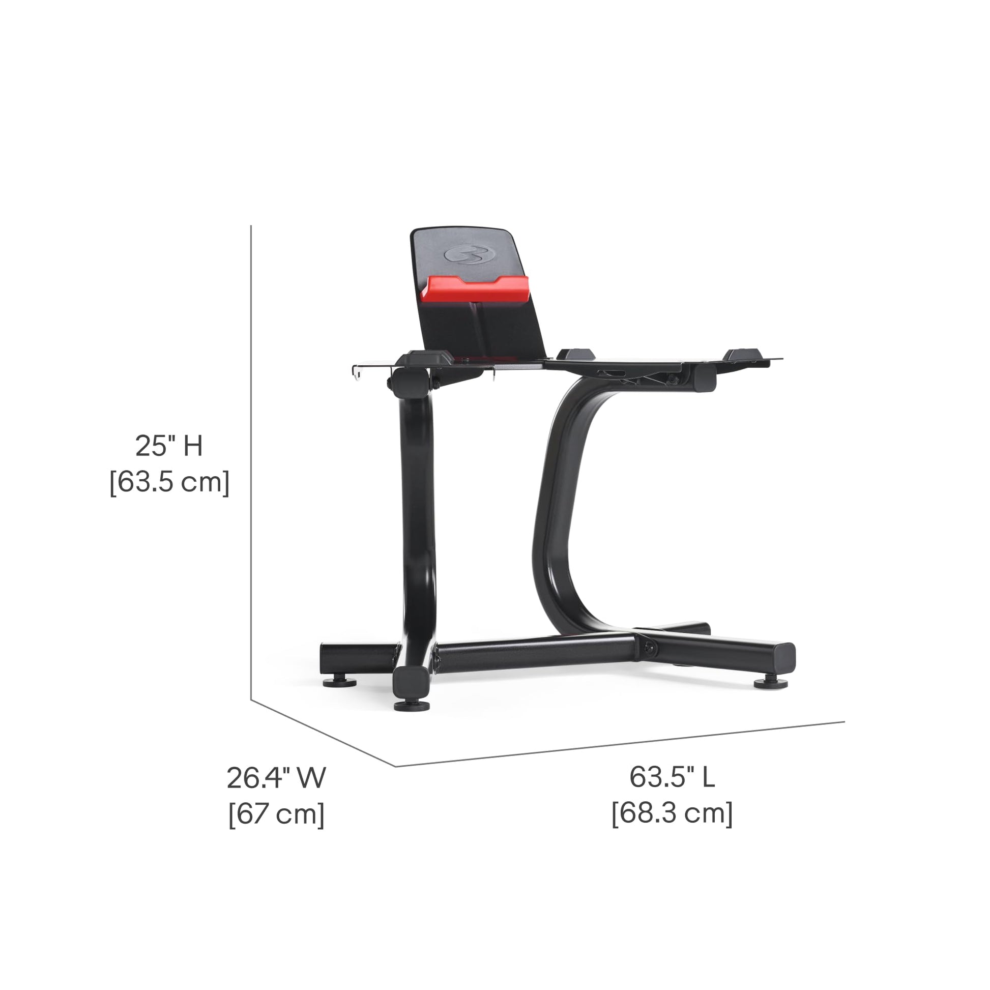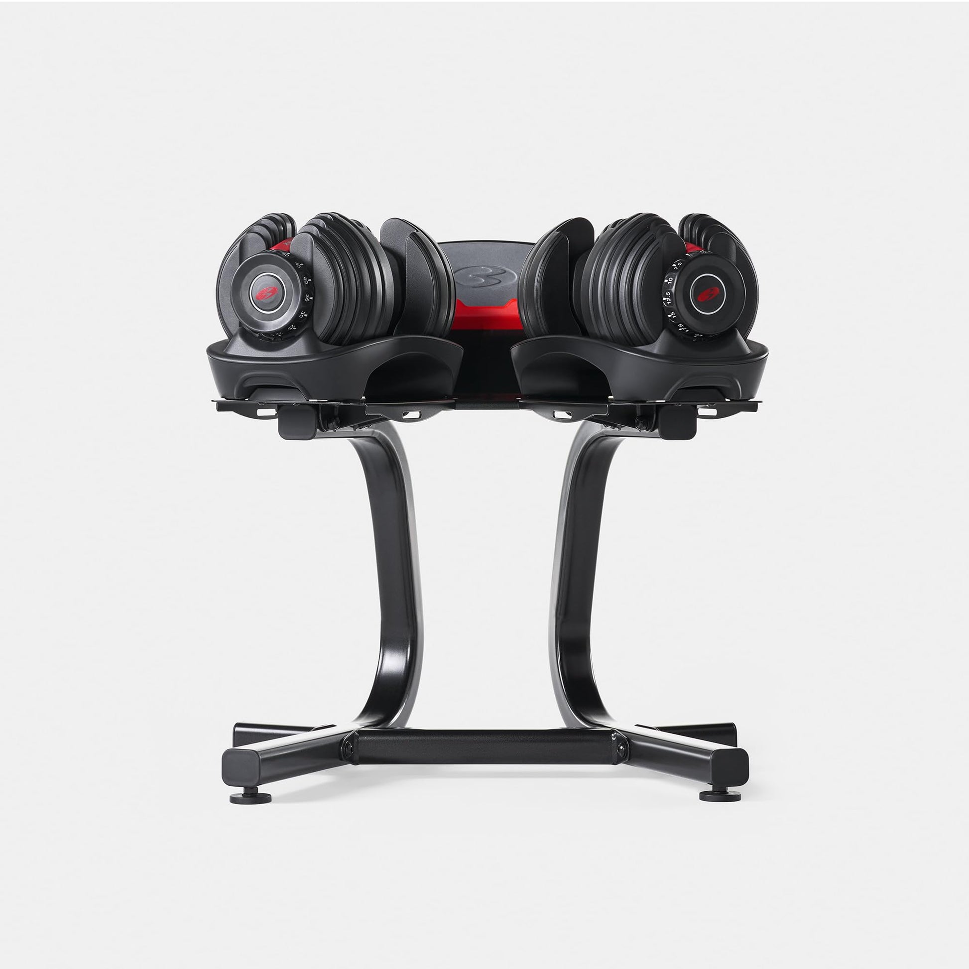 ["The dumbbell stand from Bowflex for the two Selecttech dumbbells 552 and 1090.",