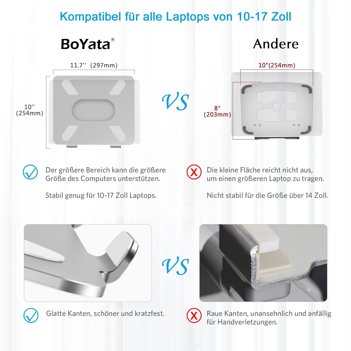 BoYata Laptop Stand, Aluminum Height Adjustable Ventilated Laptop Stand, Notebook Stand Compatible for Laptop (10-17 inches)