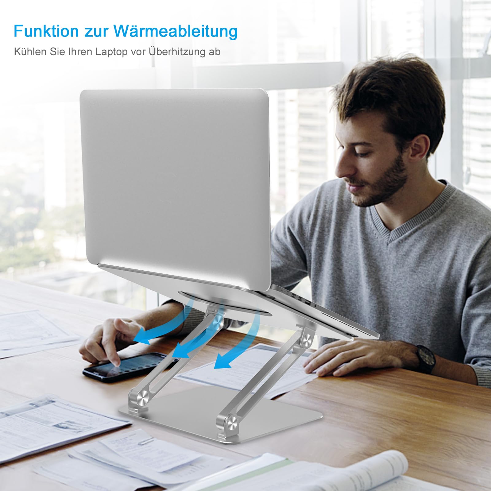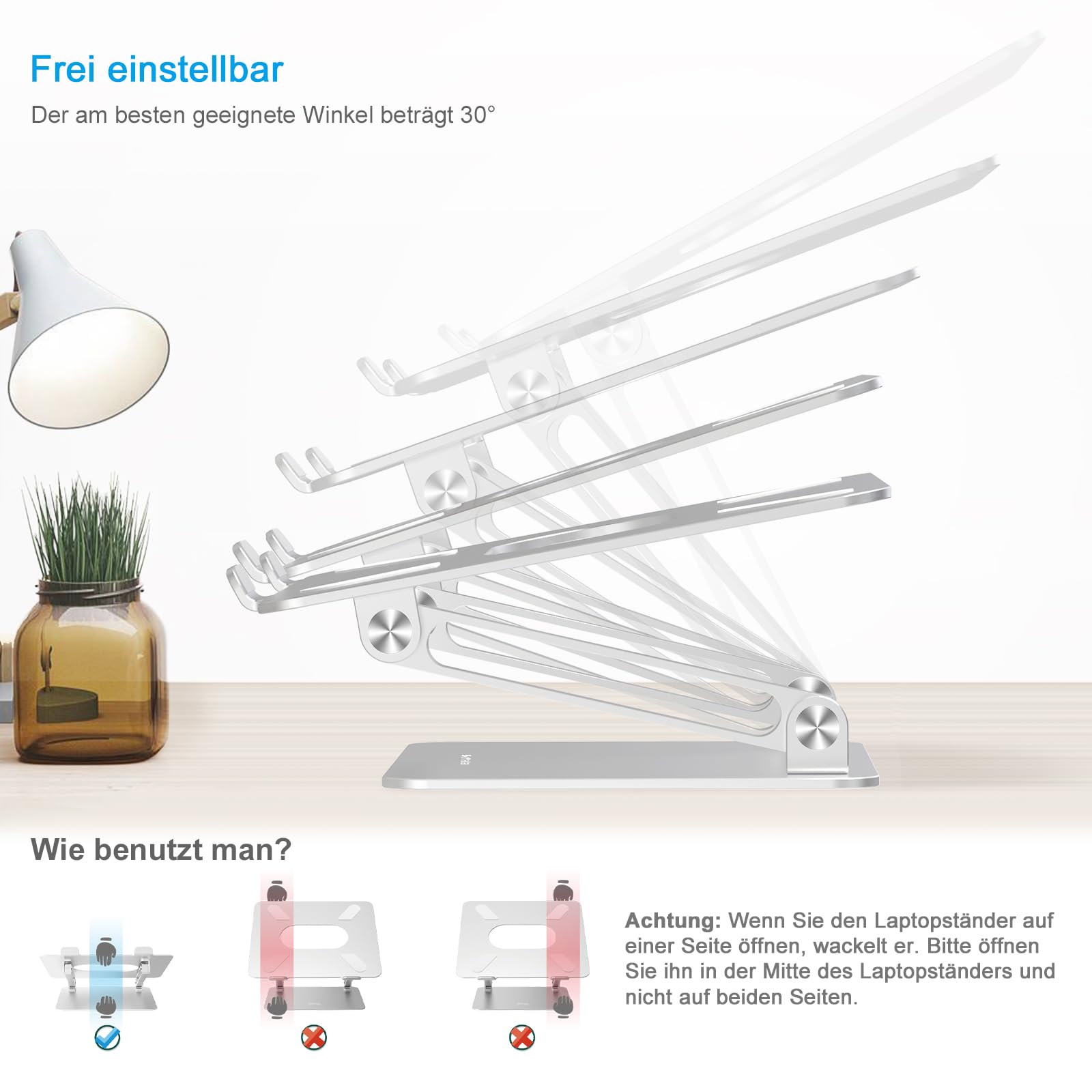 ["【SETTING】The laptop stand is made of sturdy aluminum, allowing you to adjust to different angles as needed and stand higher or lower. It elevates your computer and creates more space for papers and other items on the desk.","【Stability】Featuring a stylish and durable texture and aluminum material, the tablet stand is stable with 4 non-slip silicone pads on the bottom. Protective hooks ensure your computer stays in place on the stand.","【ERGONOMICS】The Z-type design allows for adjusting to the ideal height for typing, watching, and sitting properly while supporting a comfortable posture for the back and neck. It relieves back and neck strain.","【VENTILATION】Made of high-quality aluminum, the entire stand can easily absorb and dissipate heat. You don't have to worry about your laptop overheating, as the heat can be transferred throughout the stand to keep the computer cool.","【We stand behind our product】If you have any questions before or after purchasing, feel free to reach out to us."]