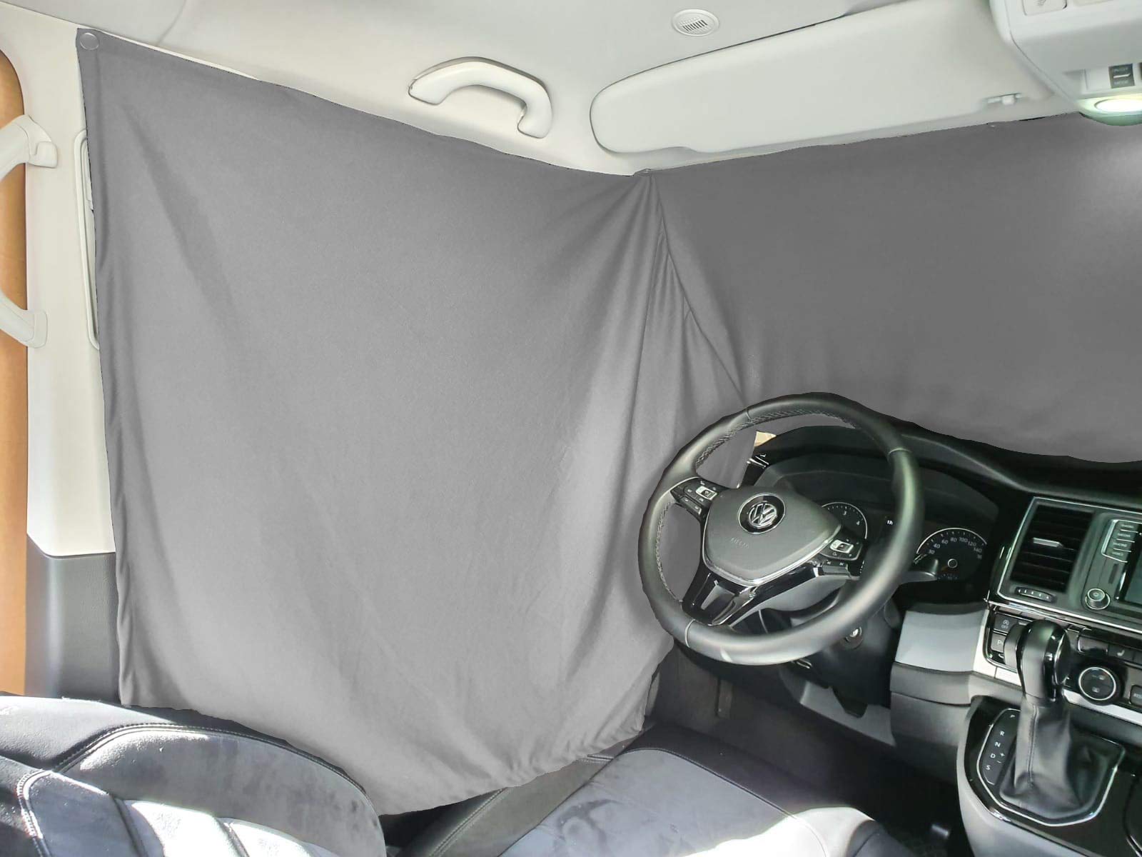 BREMEN SEAT COVERS Front Windshield Sunshade Camping Guide Cab Curtains Compatible with VW T5 T6 T6.1 in Grey