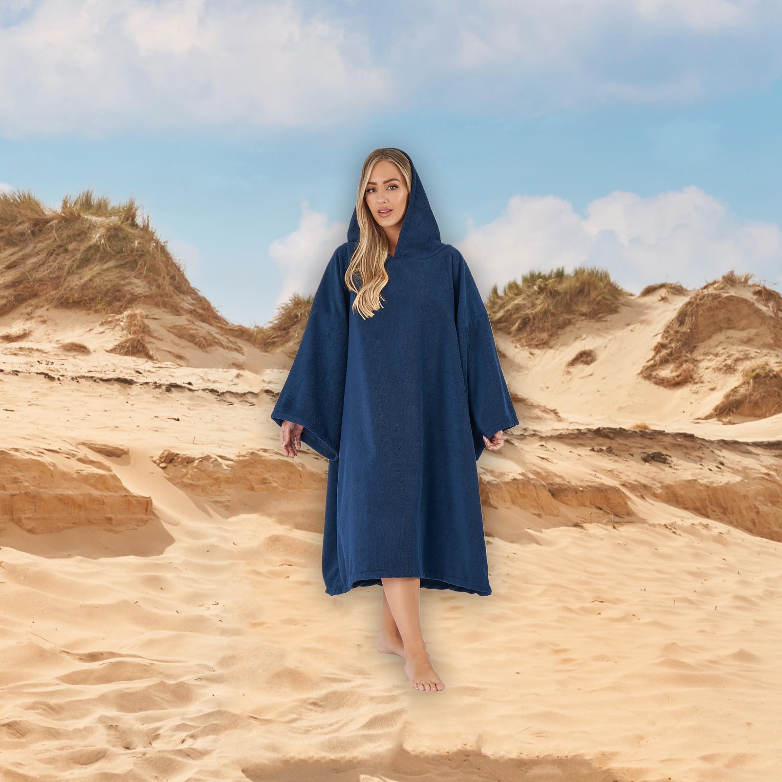 Brentford's hooded towel poncho for men and adults, large for bathing, swimming, surfing, wrapping, for men and boys bathing poncho ladies navy blue