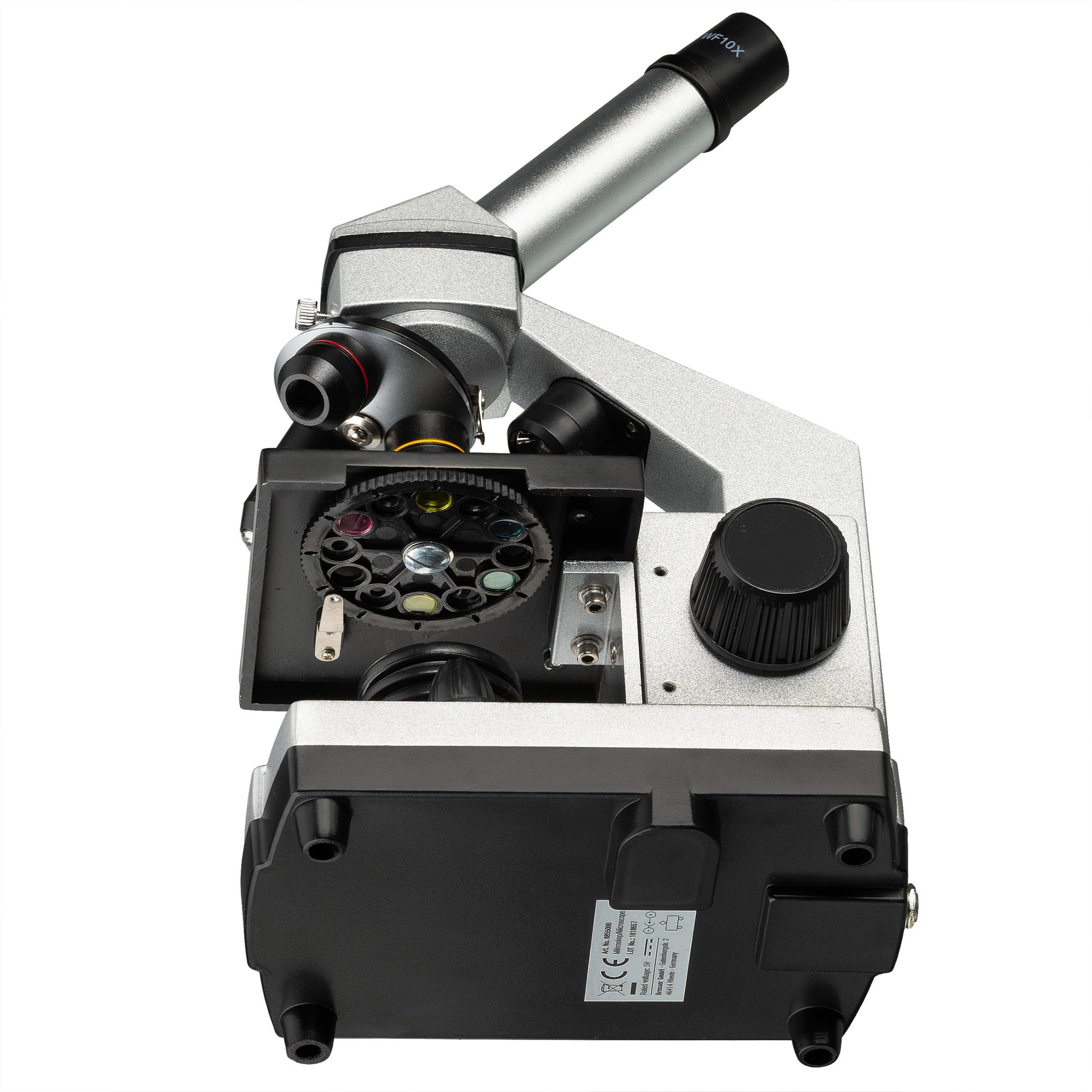 "The high-quality entry-level microscope in a classic design with LED illumination has a high magnification. It is equipped with a USB eyepiece for connection to a PC and allows for initial insights into the world of microscopy. The included eyepieces provide magnifications of 40x-1024x and the monocular attachment allows for connection of a USB eyepiece camera for viewing and editing on the computer. The bright LED illumination with transmitted and reflected light ensures optimal object illumination, and with the extensive accessories including multiple samples, you can start right away. Dimensions: 153x267x100 mm / Weight: 2.7 kg; The device is powered by the power plug (included). Included: Microscope; USB eyepiece; 5 slides and 5 cover glasses; Shrimp breeding system; Mounting medium; Wide field eyepieces; Hardshell case; Pipette, forceps, microtome; Dust cover; Yeast, sea salt, shrimp eggs; Barlow lens; Power supply."
