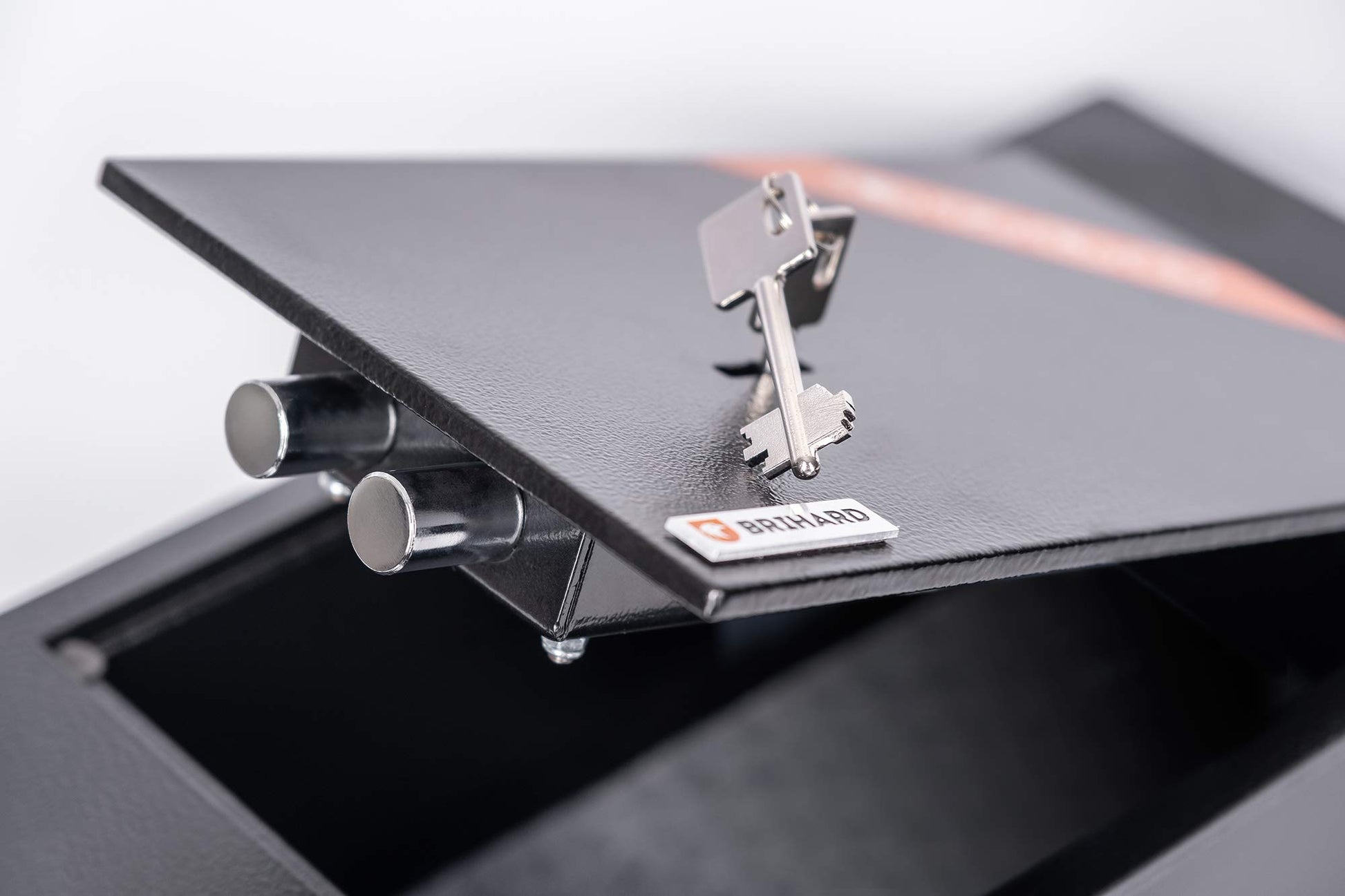 Brihard floor-mounted safe with key lock - built-in safe 4L secure storage - external dimensions 13x39x21 cm (HxWxD) | Heavy-duty safe - internal dimensions 12x33x17cm (HxWxD)