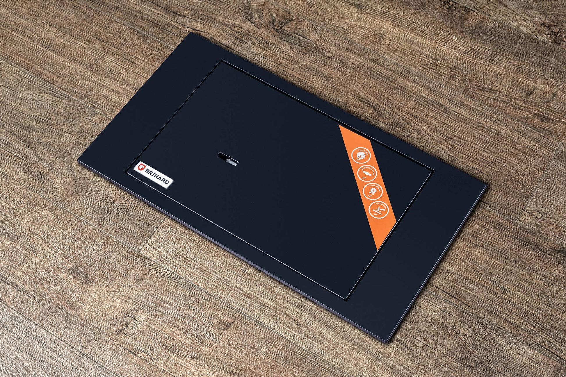 ["DISCREET, CONCEALED FLOOR SAFE. A mountable safe that can be hidden under carpet or furniture. Your valuables are especially secure when out of sight. Your floor safe remains invisible to burglars. An ideal secure solution for the bedroom.","HIGH SECURITY KEY LOCK SAFE. Double-bitted security lock of premium quality with 18mm steel bolts and 2 keys for added security. The most reliable and user-friendly locking system for security safes. Never worry about secure batteries failing again.","STURDY STEEL DOOR, SUPERIOR PROTECTION. Robust 6mm thick doors with a large unobstructed opening for easy access. 2mm thick, extra strong walls for home and office security. Titanium gray exterior with scratch-resistant powder coating. A strong steel safe you can trust.","MOUNTABLE SAFE. 4 pre-drilled holes and mounting screws included to securely attach your lockable safe to a location of your choice. Easy to install and secure for document, jewelry, or money safety. The peace of mind that your valuables are protected.","2 YEAR MANUFACTURER WARRANTY. The Brihard floor safe provides protection and excellent value for money. It is an unmatched home security box with a superior double-bitted locking mechanism. With Brihard Home Security products, you can feel safe and secure."]