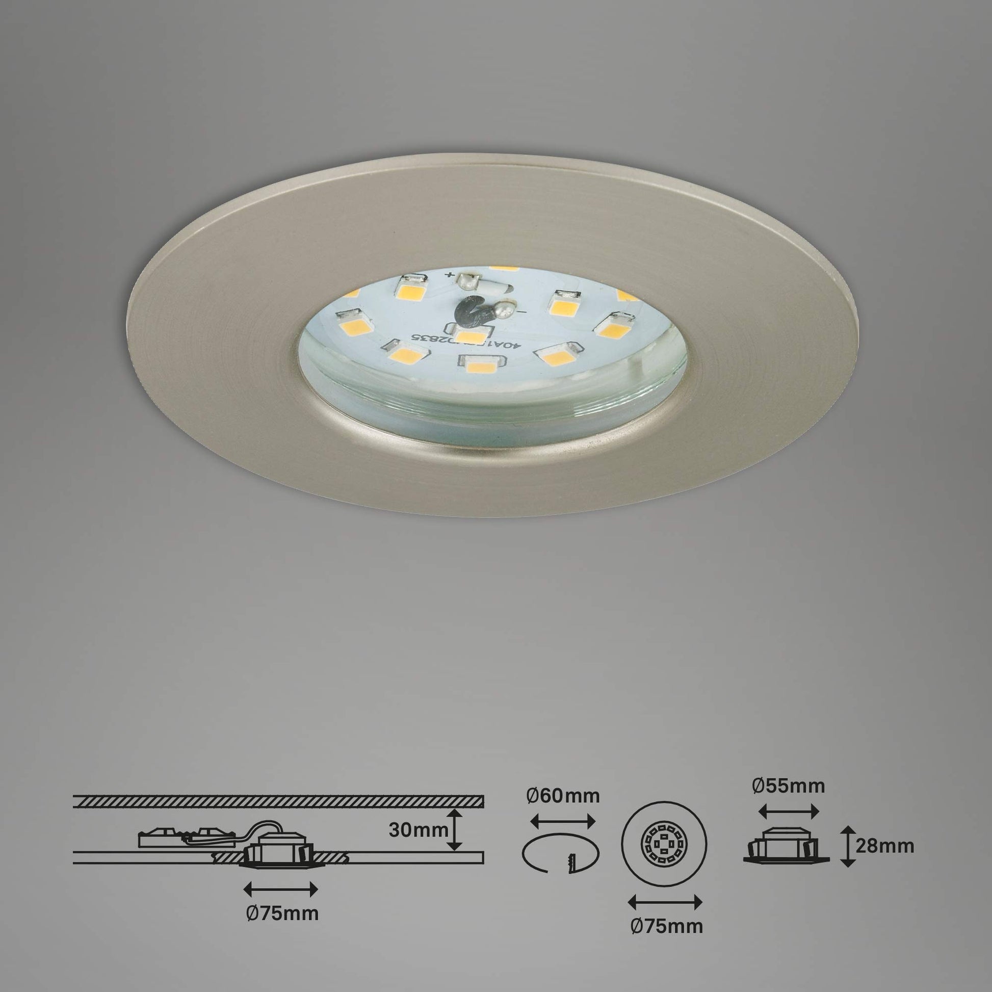 Briloner Lights 7204-032 LED Recessed Light, LED Spotlight, Ceiling Spotlight, Living Room Lamps, LED Recessed Spotlight 230V, Ceiling Recessed Lights, 5 Watts, 400 Lumens, Bathroom Suitable IP44, Energy-saving, 3-Piece Set, Round, Brushed Nickel.