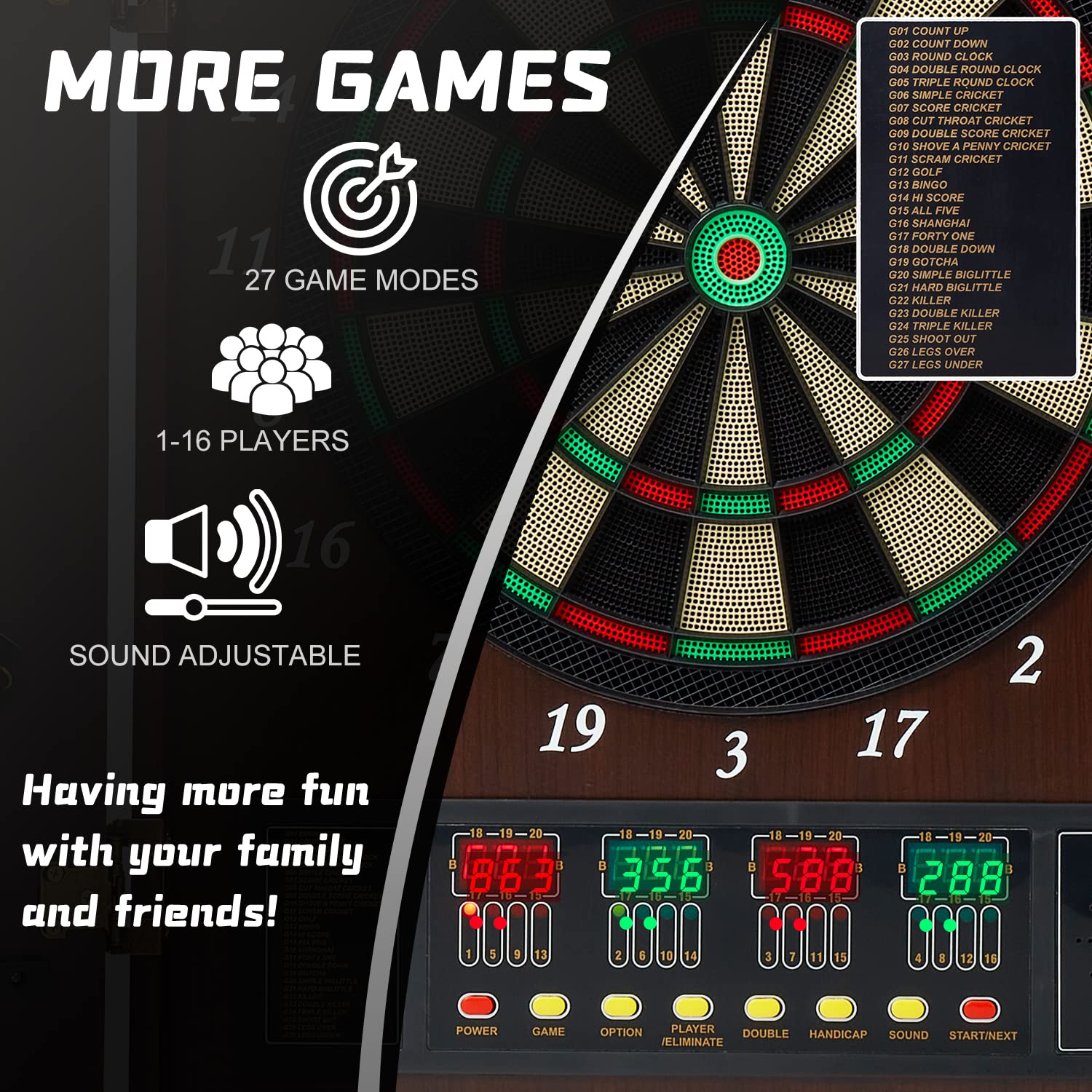 Brovamo dart board, Decorative dartboard cabinet set [12*soft tip darts], Electronic dartboard, Wooden cabinet doors with integrated scoreboard [Coffee]