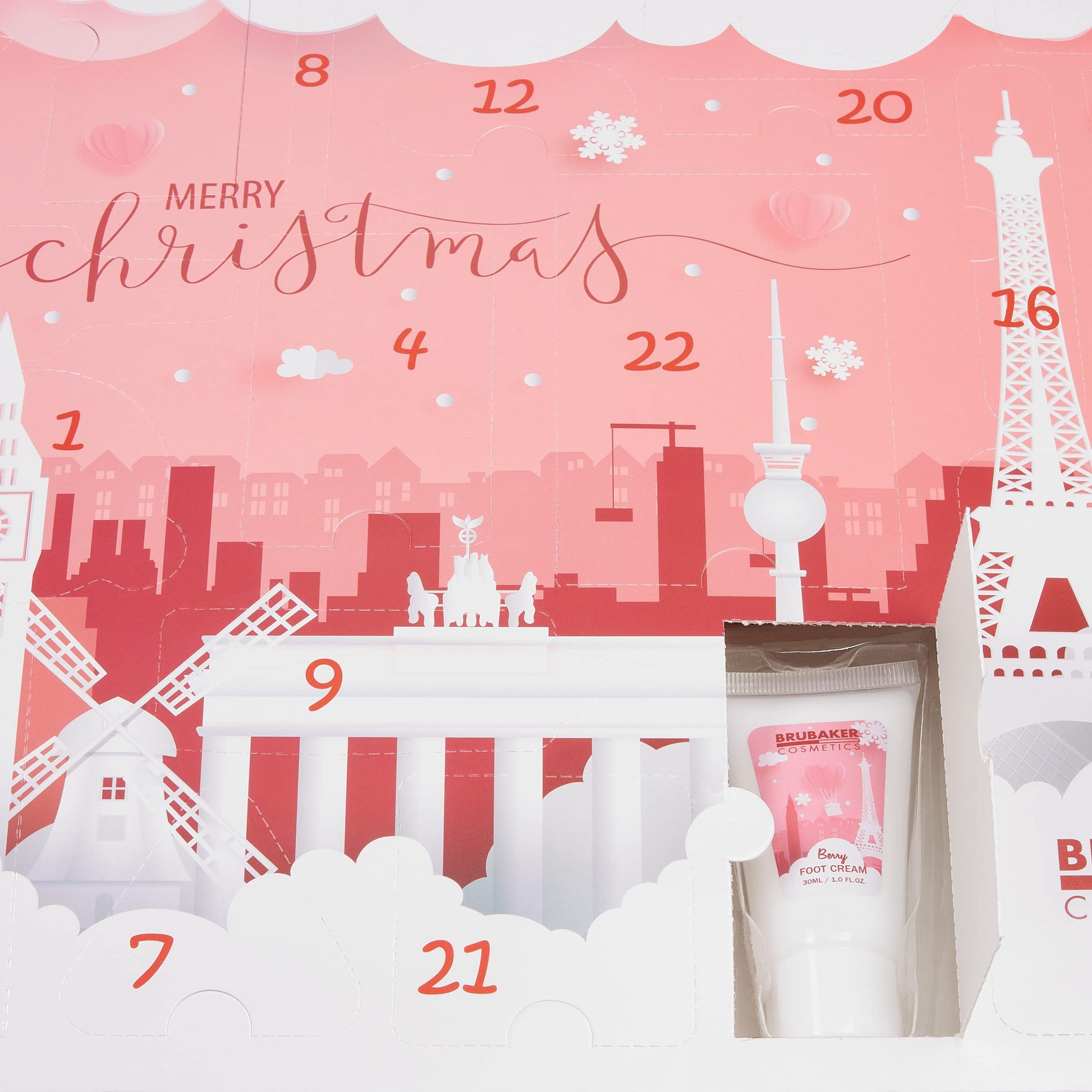 BRUBAKER Cosmetics Beauty Advent Calendar 2025 - the XXL wellness Christmas calendar for women and girls - 24 x body care products & spa accessories - city landmarks pink.