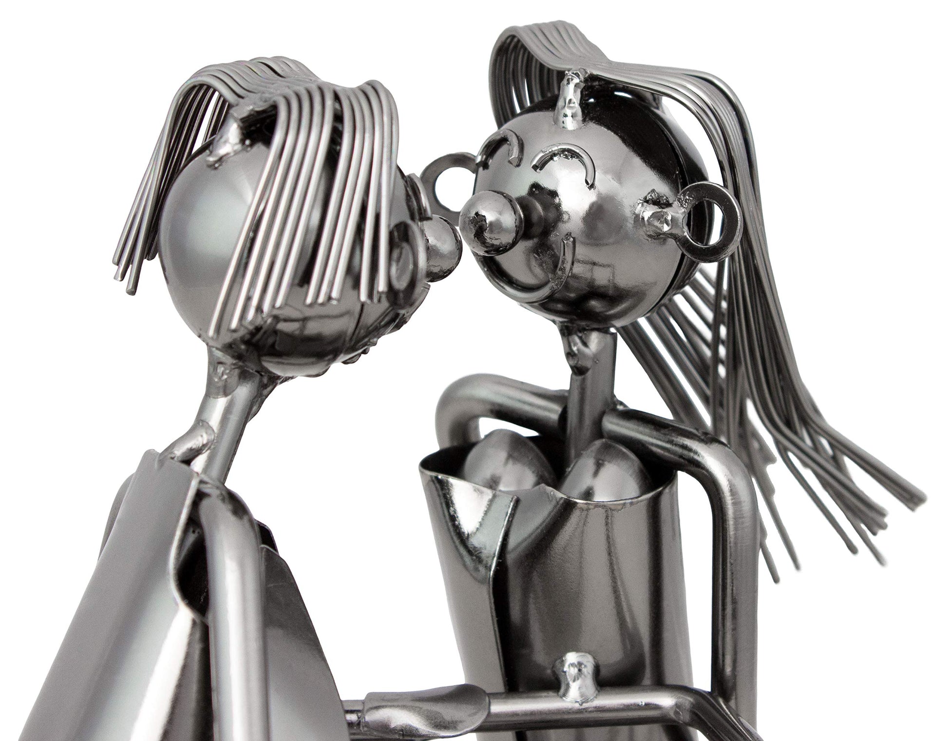 BRUBAKER wine bottle holder pair with bicycle decorations, metal bottle stand with greeting card for wine gift.