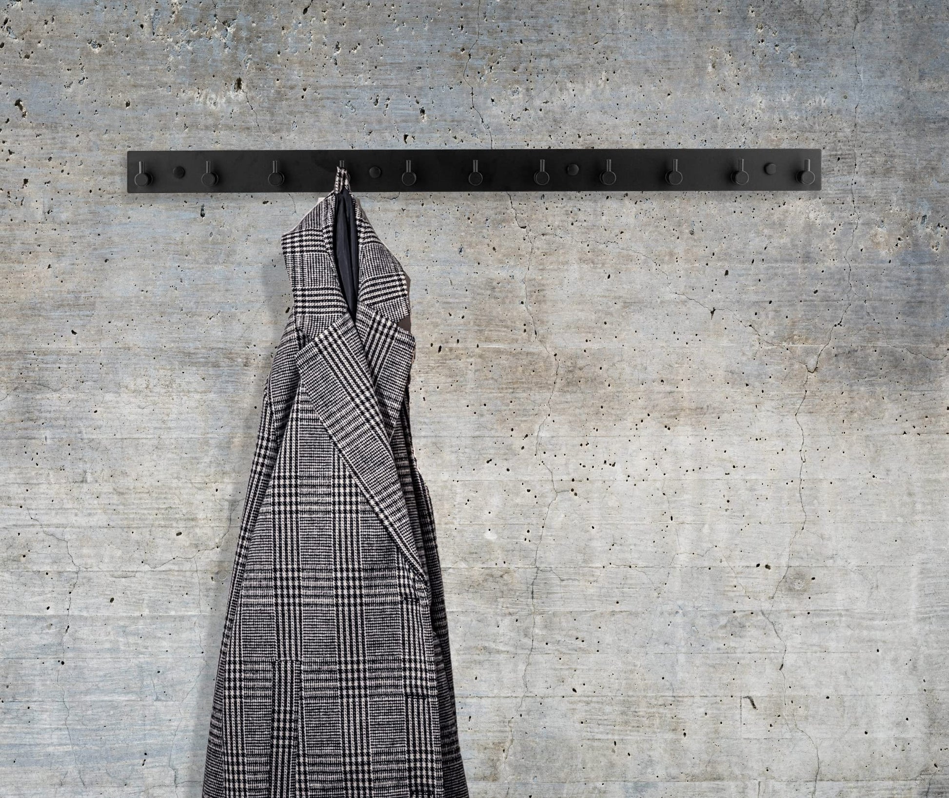 Brute Strength - Coat Rack - 11 Hooks - 74 cm - Stainless Steel - Door Hooks for Kitchen, Black Hook Rail, Wall Coat Rack, Bathroom, Living Room, and Hallway for Hats, Scarves, Handbags - Towel Hooks