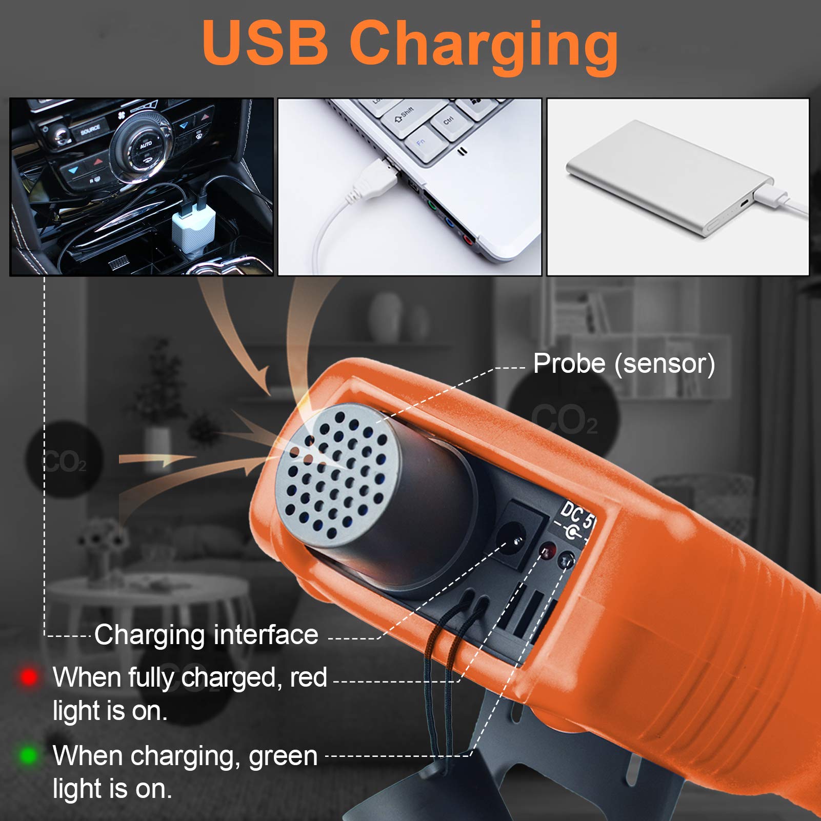 "✅【Rechargeable Ammonia Air Meter】The included USB cable can be connected to the plug for charging. Built with green/red charging indicator light. Remaining power display, automatic / manual shutdown optional to save your battery.