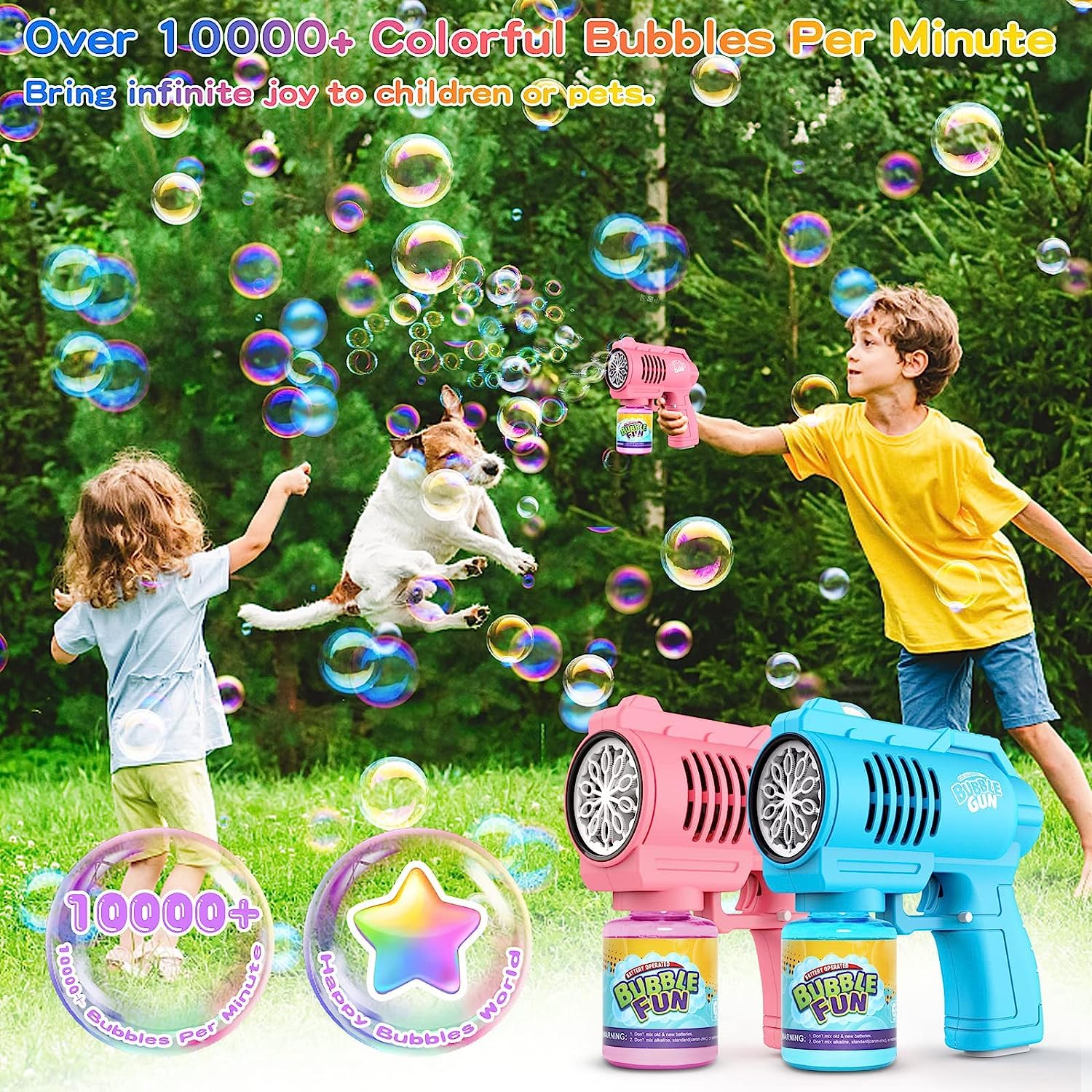 Bubble automatic bubble gun, bubble machine for children 10000+ bubbles/minute with 130ML bubble solution, bubble toy gift for kids/birthday/party (Blue+Pink)