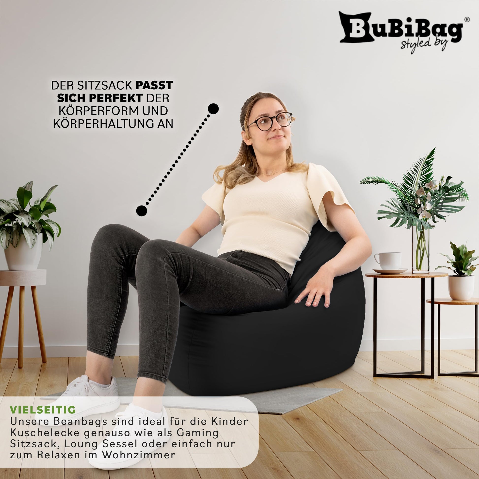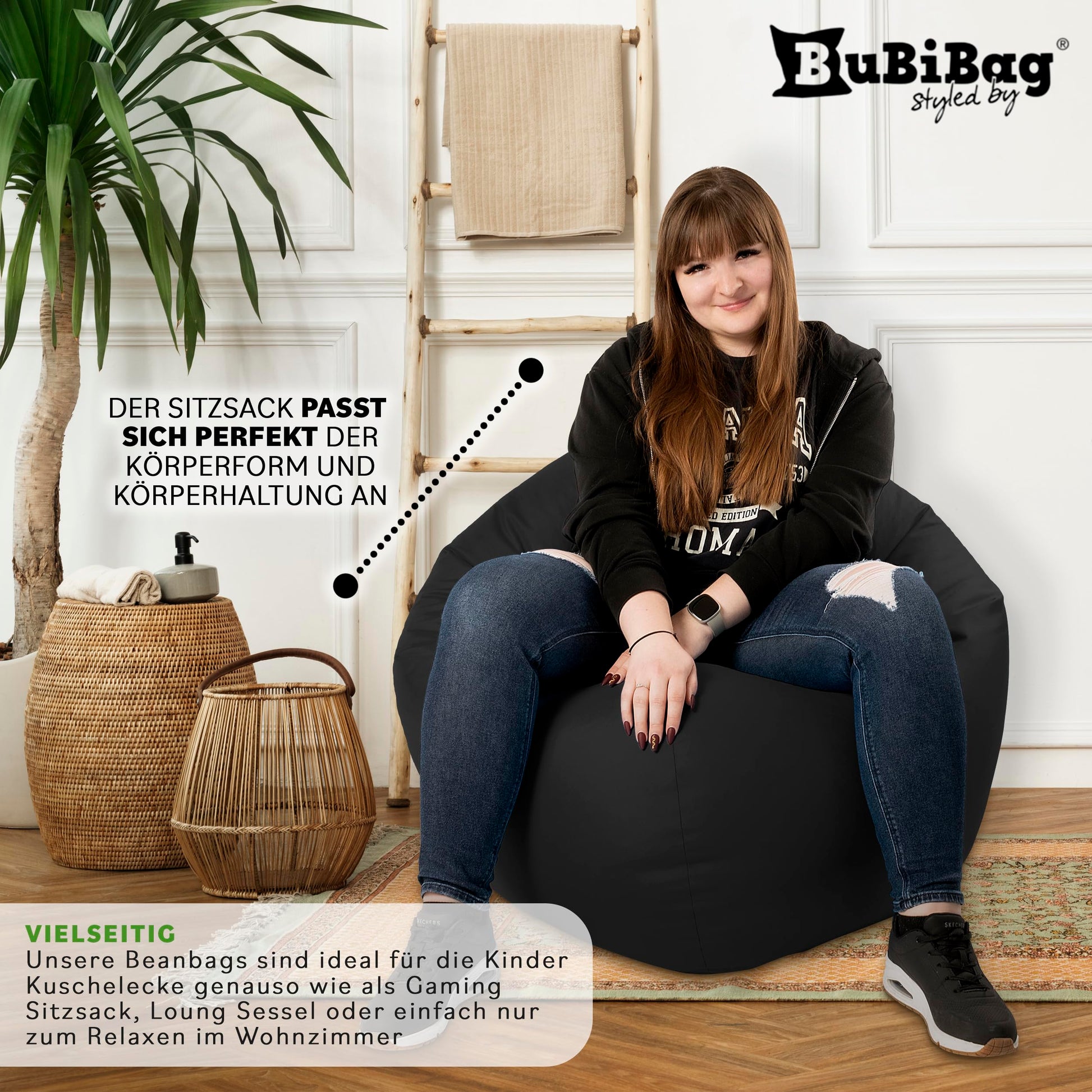 BuBiBag Premium 2-in-1 bean bag with filling for kids & adults | for outdoor & indoor use | seat cushion floor pillow | play & relax | water and dirt repellent (Black, 100 cm)