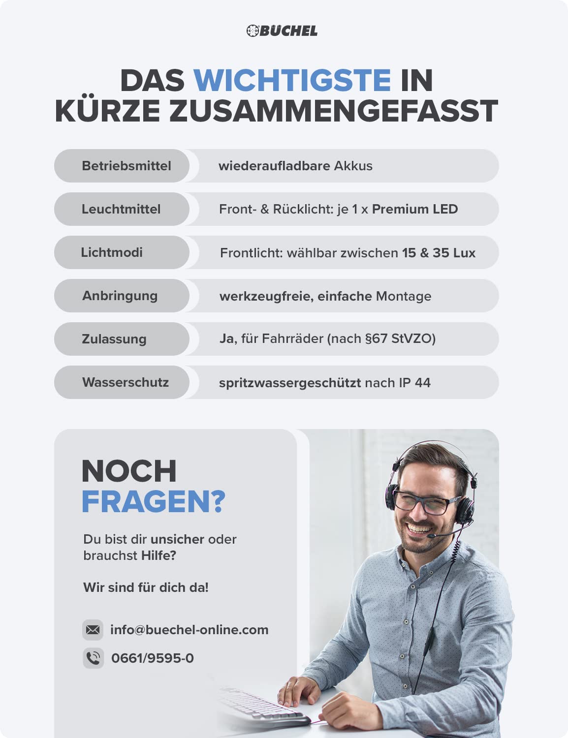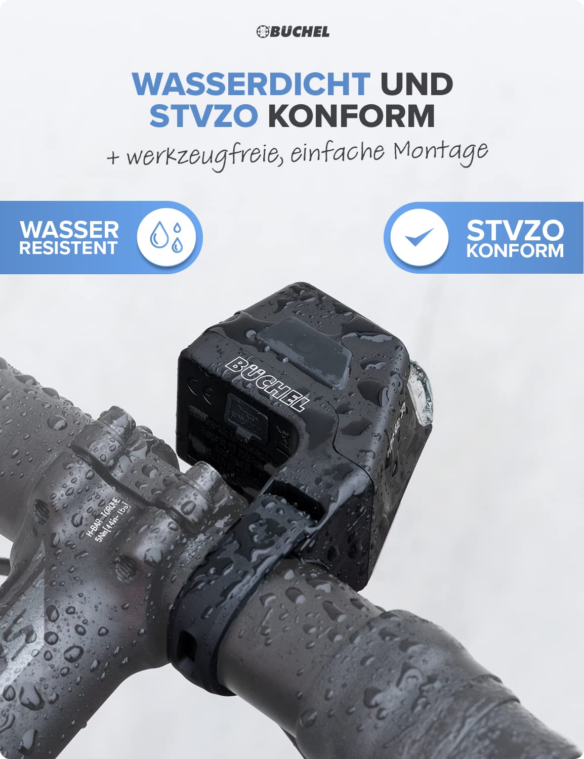 Büchel Ahead bicycle lights set I 35/15 lux design centered on the handlebar StVZO approved Rechargeable LED bike light for front + rear taillight, bike light, black