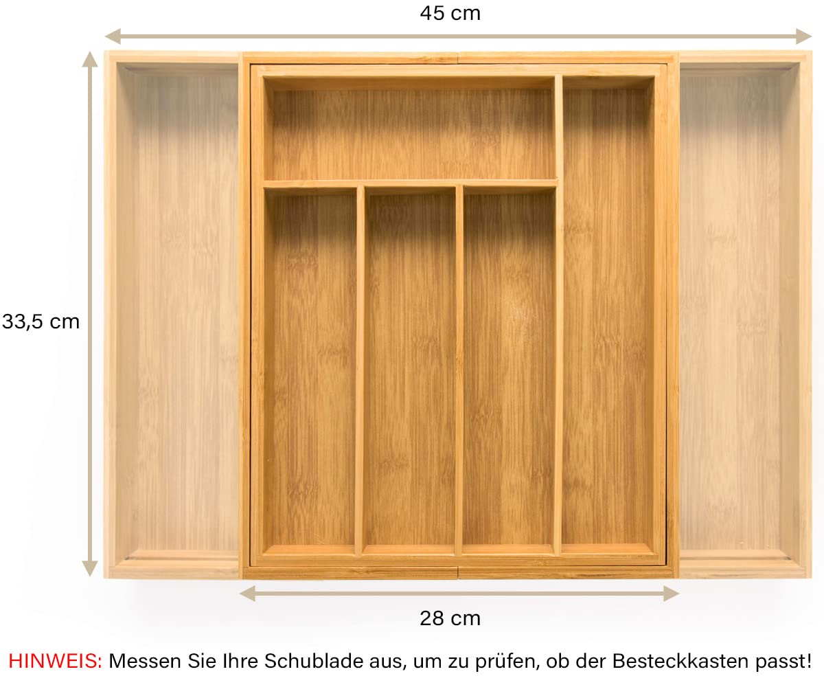 ALWAYS THE PERFECT CUTLERY TRAY: All our cutlery trays are expandable in width. Simply choose the cutlery tray that fits the depth of your drawer. Then slide the cutlery tray in width, so that it fits perfectly in the drawer.