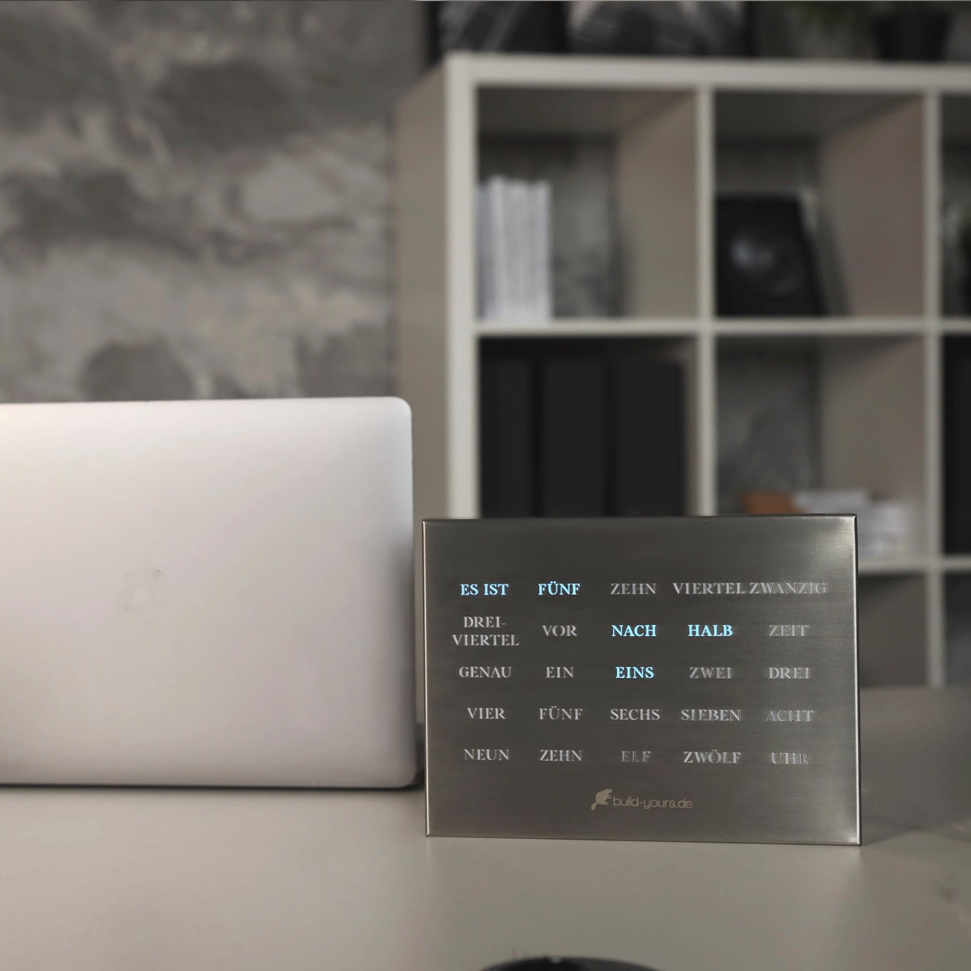 build-your-own BoxClock Stainless Steel - The word clock for your desk - LED desk clock - Elegant office clock made of brushed stainless steel