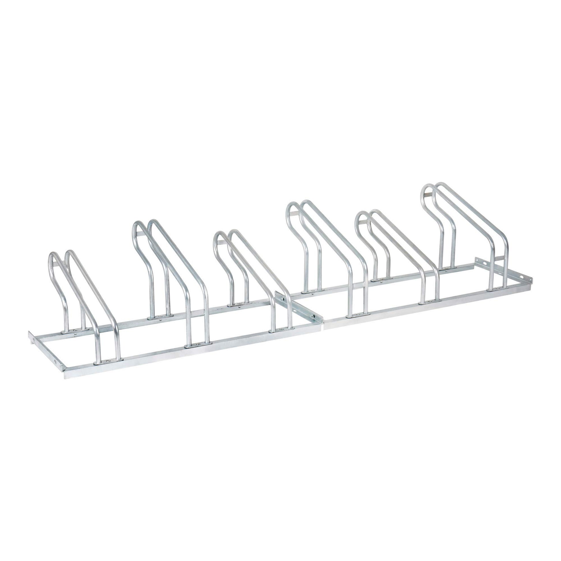 BULL bike stand, for 6 bikes, hot-dip galvanized steel construction, hoop rack, suitable for mountain bikes, for row connection and floor mounting, tire width up to 5.5 cm