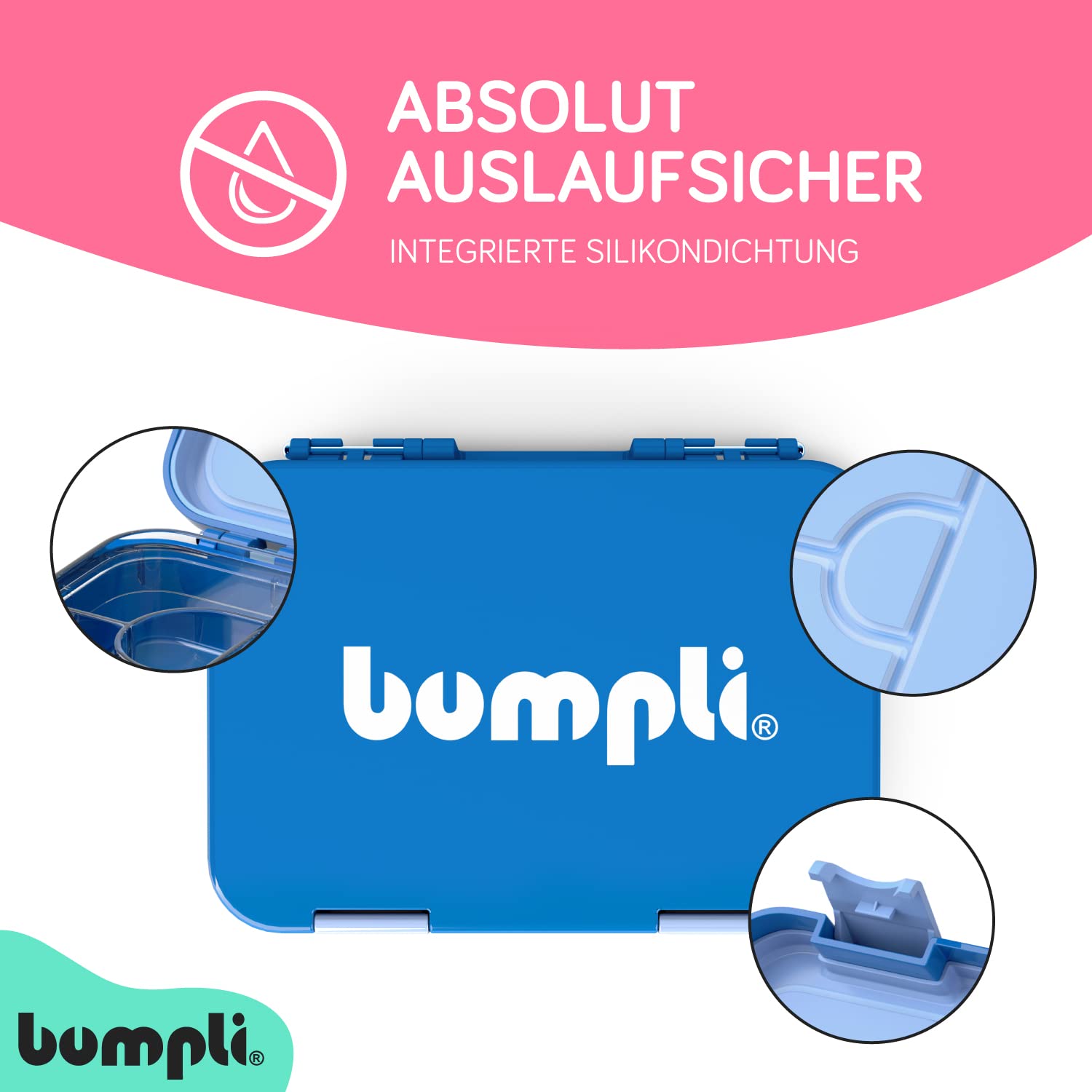 ["Perfect for on-the-go dining - Our bumpli lunchbox is large and spacious, measuring 8.3 inches in width, 5.9 inches in depth, and 1.8 inches in height. This allows all treats to be comfortably and securely packed for transport.", "High-quality and versatile - The premium lunchbox ensures safe and practical food storage. Whether for daycare, school, the office, or outings, meals can be divided and transported in up to 6 compartments.", "Easy to clean and maintain - The inner parts of the bento box are removable for easy cleaning in the dishwasher. The outer box can be easily rinsed under running water.", "Child-friendly and safe - With the BPA and toxin-free inner lid, the lunchbox is safe for children. Available in 4 trendy colors to suit everyone.", "Ideal for varied meals - The bumpli lunchbox allows for meals to be divided into up to 6 compartments, providing diverse and balanced meals for children at daycare, school, the office, or on outings."]
