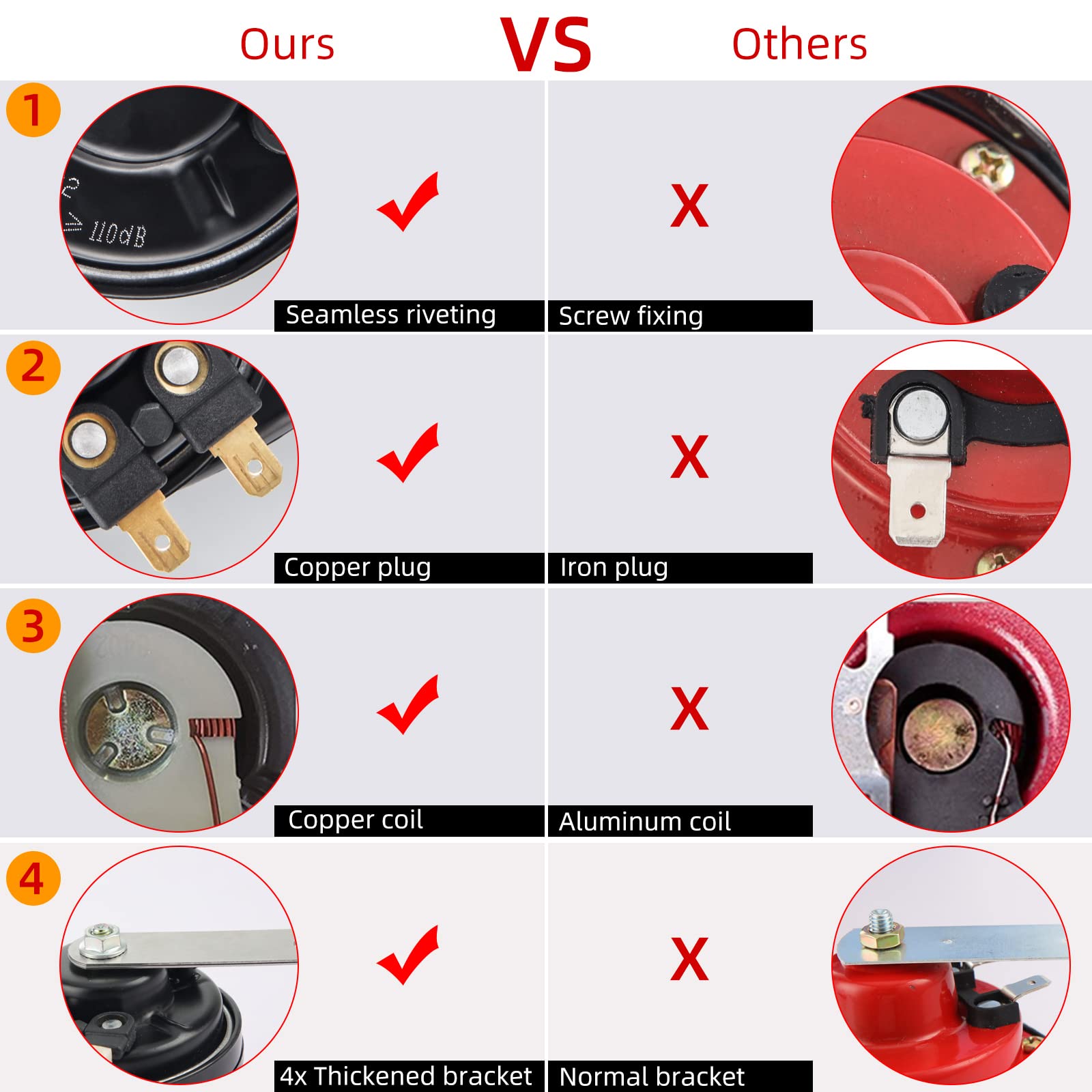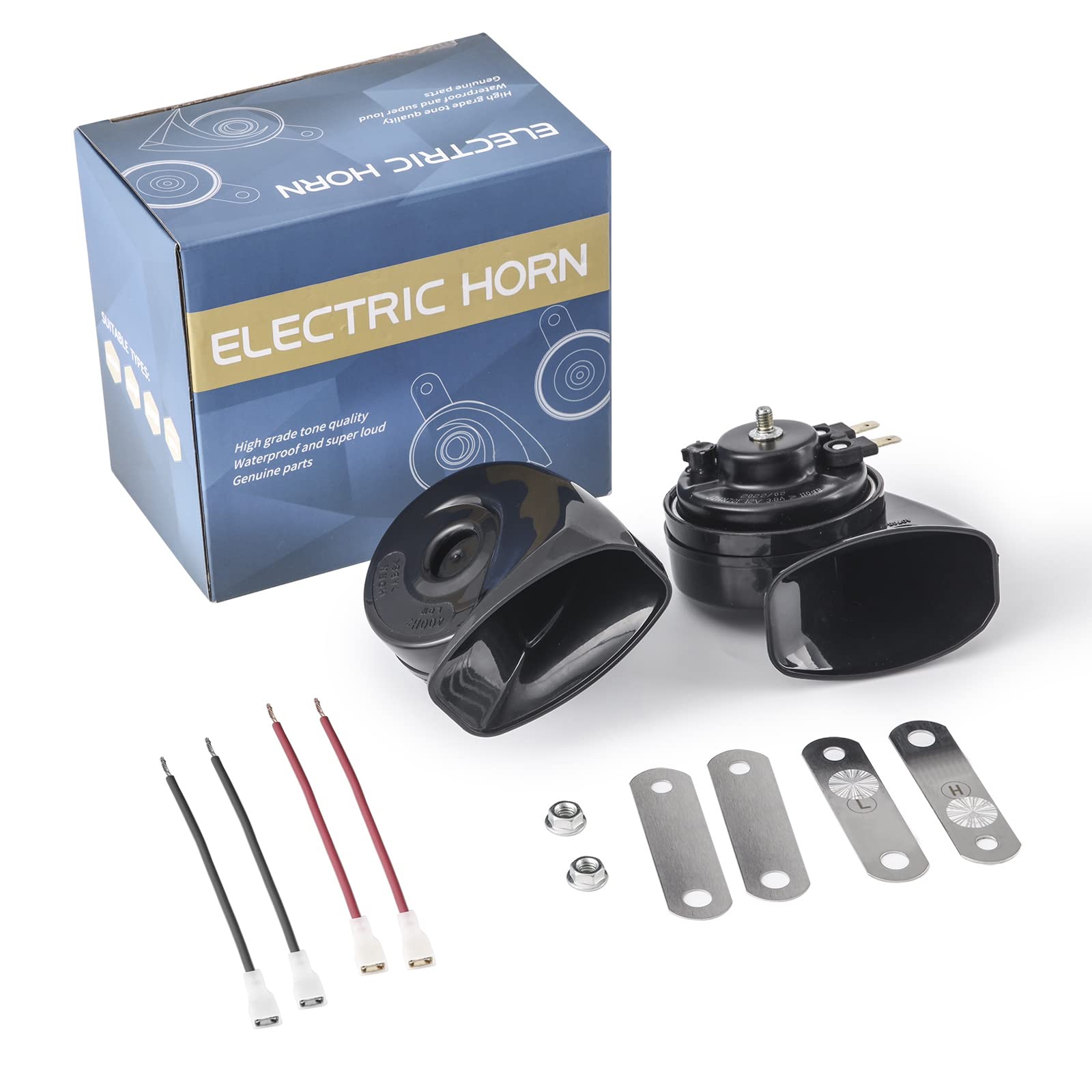 ["Super loud car horn - This horn has good sound quality, a loud and strong warning. It can produce a loud sound like 108~118DB. (Different distances produce different decibels, and the decibels at close range can exceed 118 DB)","Wide Compatibility - Suitable for 12V DC vehicles: 12V cars and trucks, motorcycles, ATVs, karts, pickups, RVs, SUVs, MPVs, vans, ATVs, and all other 12V vehicles","Easy to Install - Our snail horn comes with screw brackets and clamp wires; making installation easier for you; It only requires a 12V power supply and lower power consumption (Please make sure the horn mouth is facing down and not up)","High-Quality Material - The 12V horn has a high solid mounting bracket, a pure copper spiral coil, a technical ABS plastic shell, and a super loud diaphragm. Made with excellent materials, the scientific design can achieve powerful sound and longest lifespan","Best Gift - This is a car parts horn that allows you to drive safely. I think this is the product your wife, family, and friends need"]