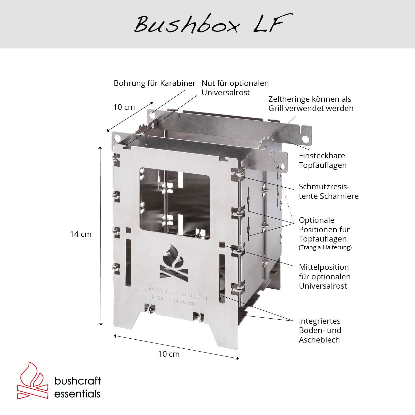 BUSHBOX LF outdoor stove | hobo stove | camping | wood | gas | alcohol | foldable | compact | stainless steel | 100% Made in Germany.