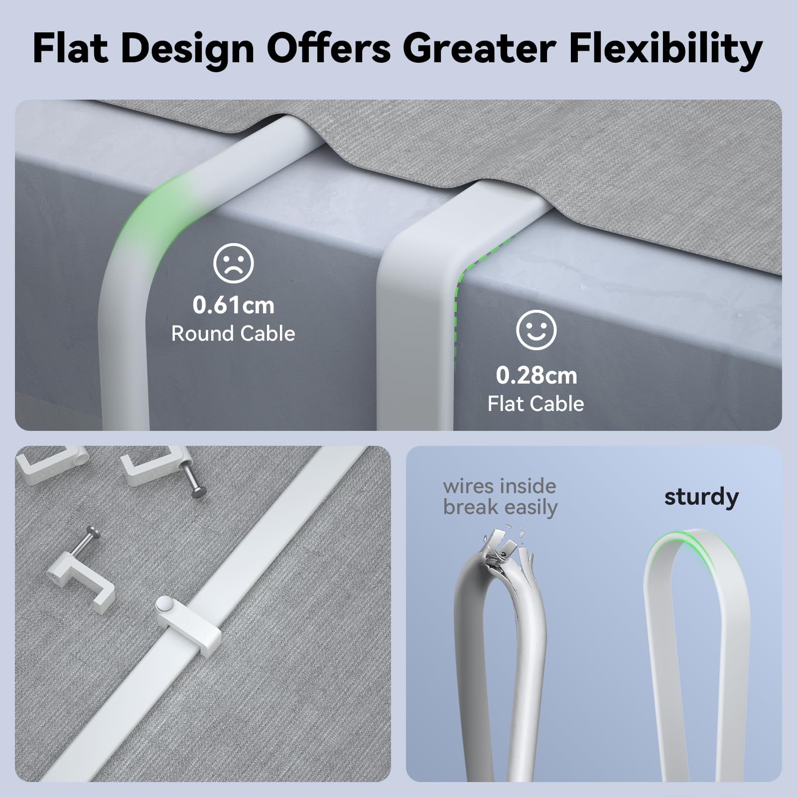 Easier to Handle - The flat design makes it easier to hide or run on any surface; it doesn't tangle like typical round cables; and the cable is very durable, suitable for outdoor or wall use. But if you choose to bury it underground, it's better to run it through a PVC conduit.