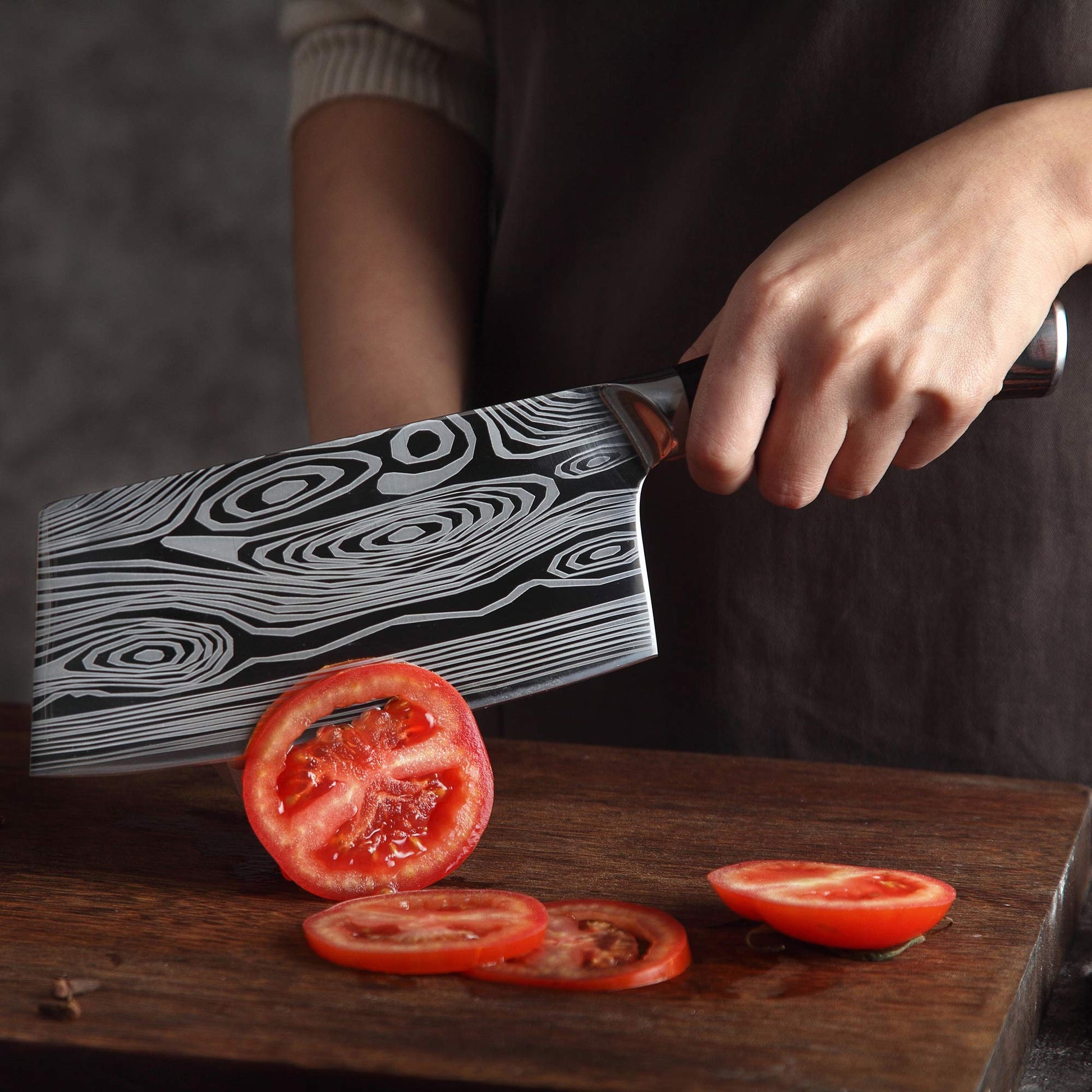"Premium material: Cutting-edge technology, excellent craftsmanship, stunning unique design, high-quality German HC stainless steel ensuring the hardness of chopper-cleaver-butcher knives for wear resistance, durability, corrosion and stain resistance. A perfect gift for any home or kitchen chef."