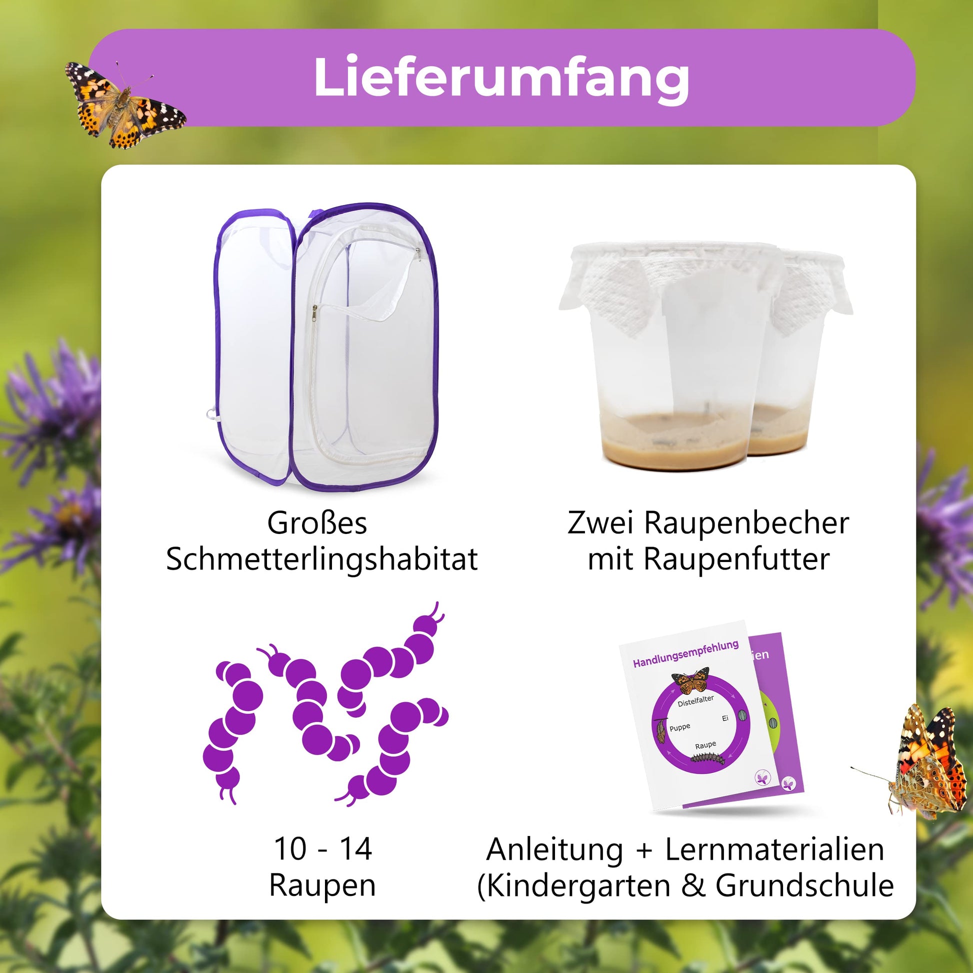 Butterfly breeding kit for kids | Approx. 14 caterpillars + large habitat (40x40x60 cm) | FREE E-Book + educational materials | Breed caterpillars at home from age 3 | Raise native Painted Lady butterflies