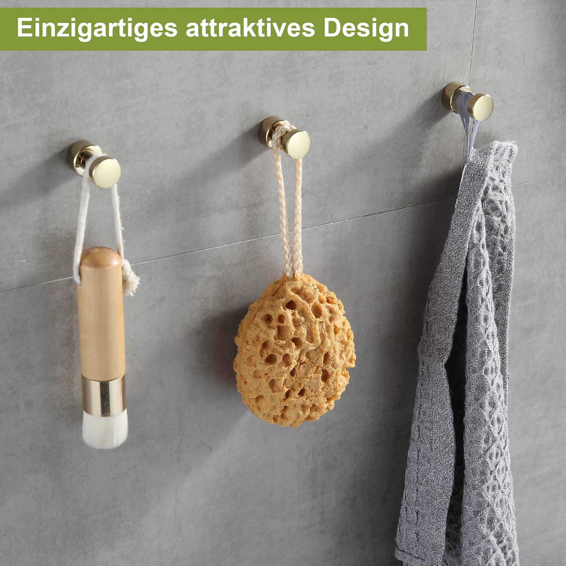 ["Durable Material: The stylish golden towel hooks are made of high-quality brass, strong and durable, rustproof and easy to clean. The edges of the hooks are smoothly polished, providing a pleasant touch and preventing your hands from being scratched.",