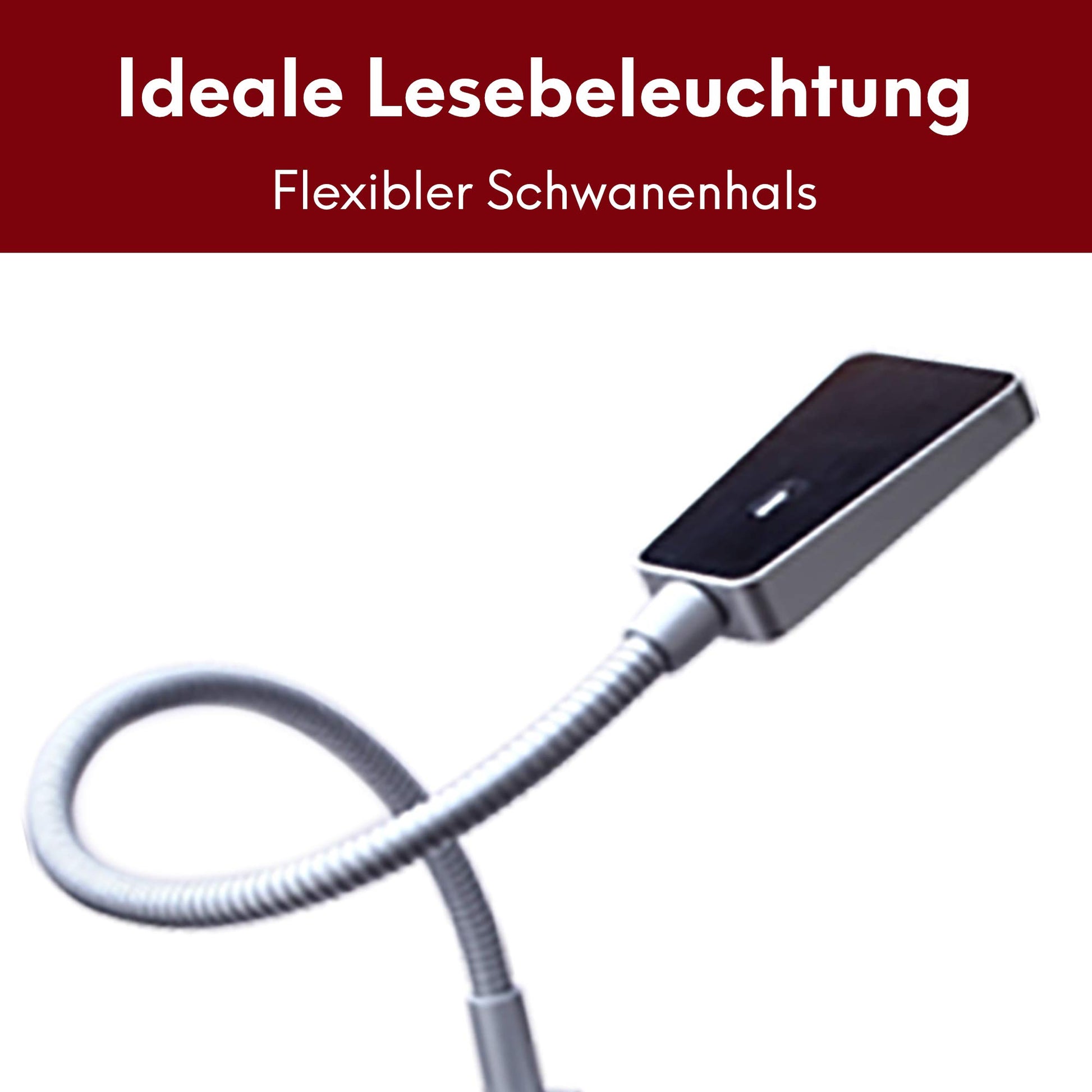 "DESIGN: Modern, elegant design that adds a special touch to your rooms. With the flexible gooseneck, you can easily adjust the light of the bedside lamp to the desired position and angle. This provides a focused, bright lighting - without glare.